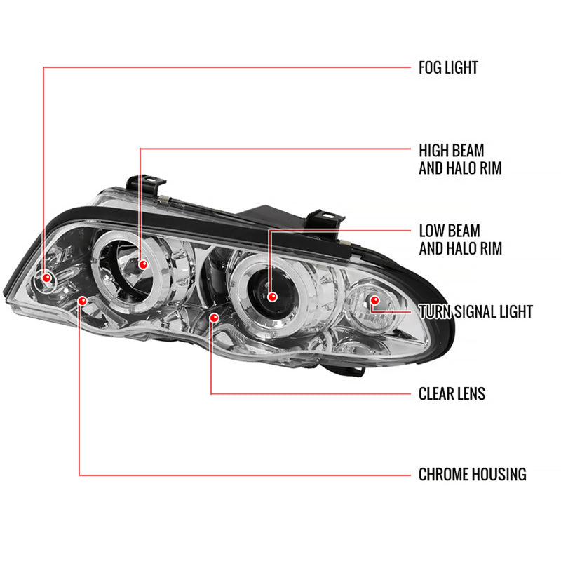 1999-2001 BMW E46 3 Series Sedan Dual Halo Projector Headlights Chrome/Clear