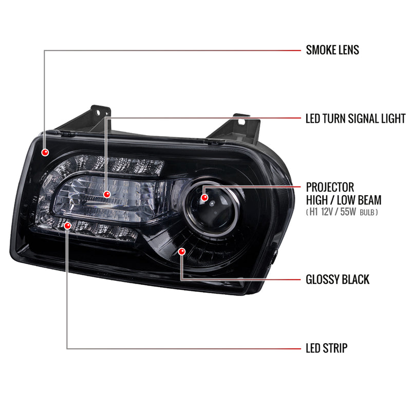 2005-2010 Chrysler 300 Base/LX/Touring Headlights LED Light&LED Signal Smoke
