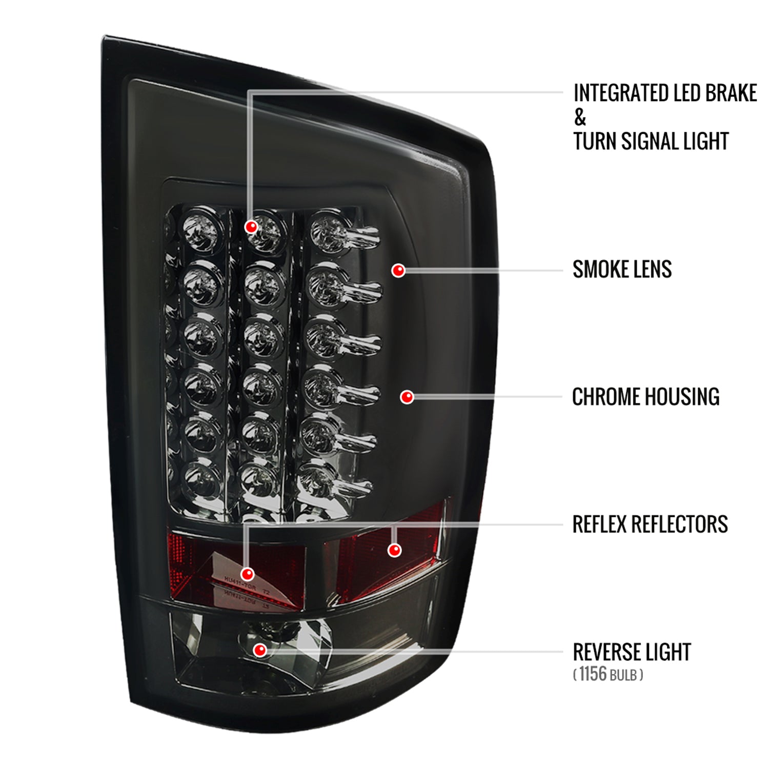 2007-2009 Dodge RAM LED Tail Lights Chrome Housing/Smoke Lens