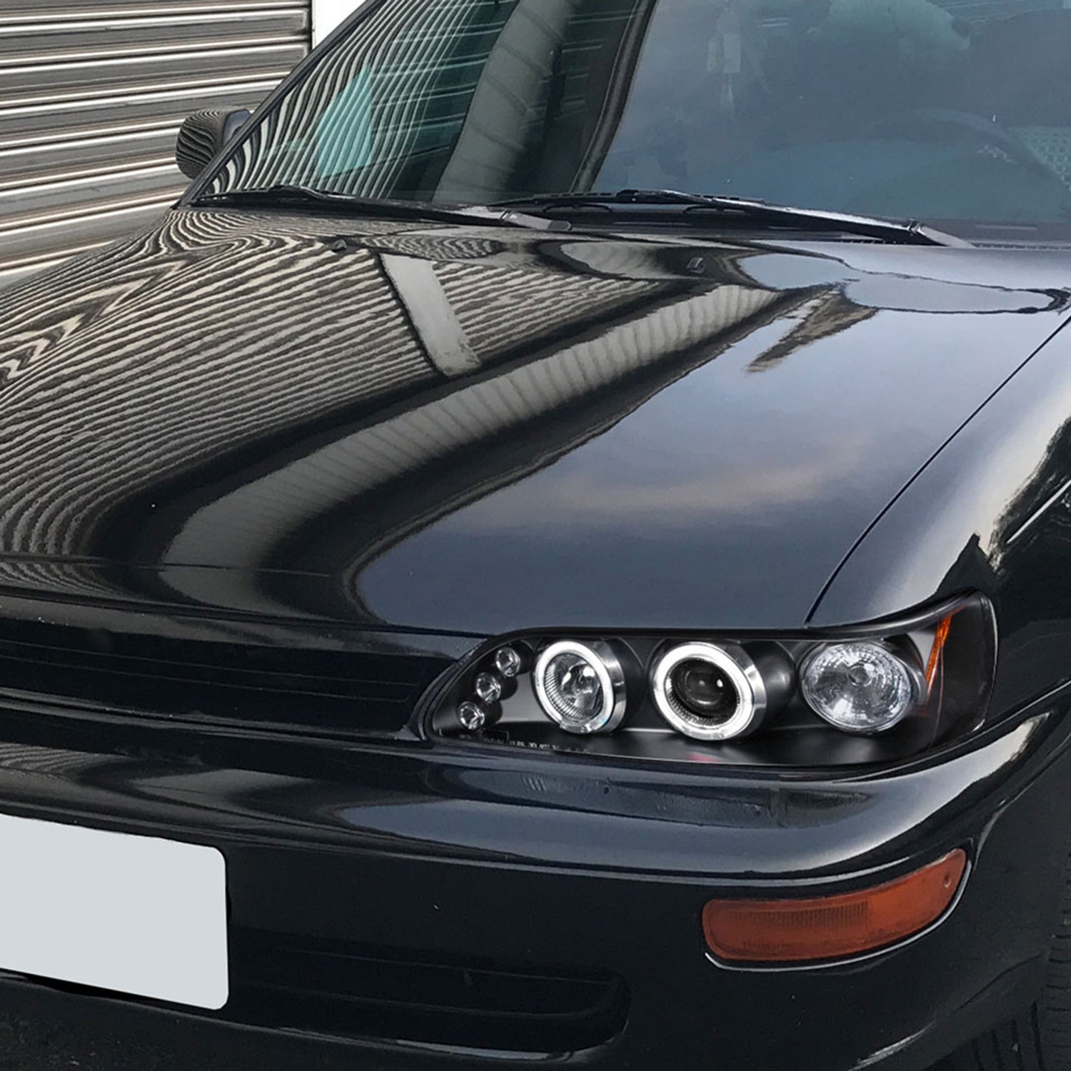 1993-1997 Toyota Corolla Dual Halo Projector Headlights Matte Black/Clear Lens