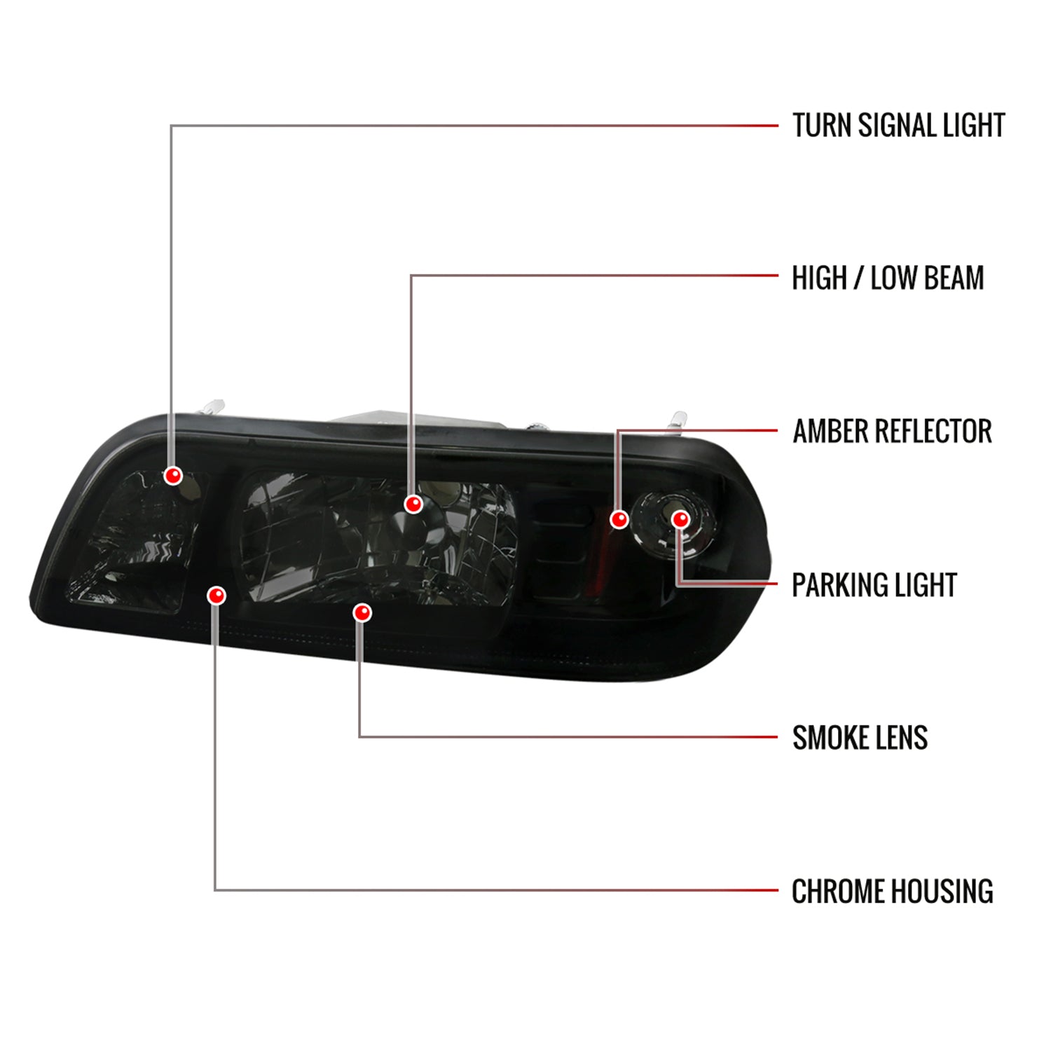 1987-1993 Ford Mustang Crystal Headlights Chrome Housing/Smoke Lens