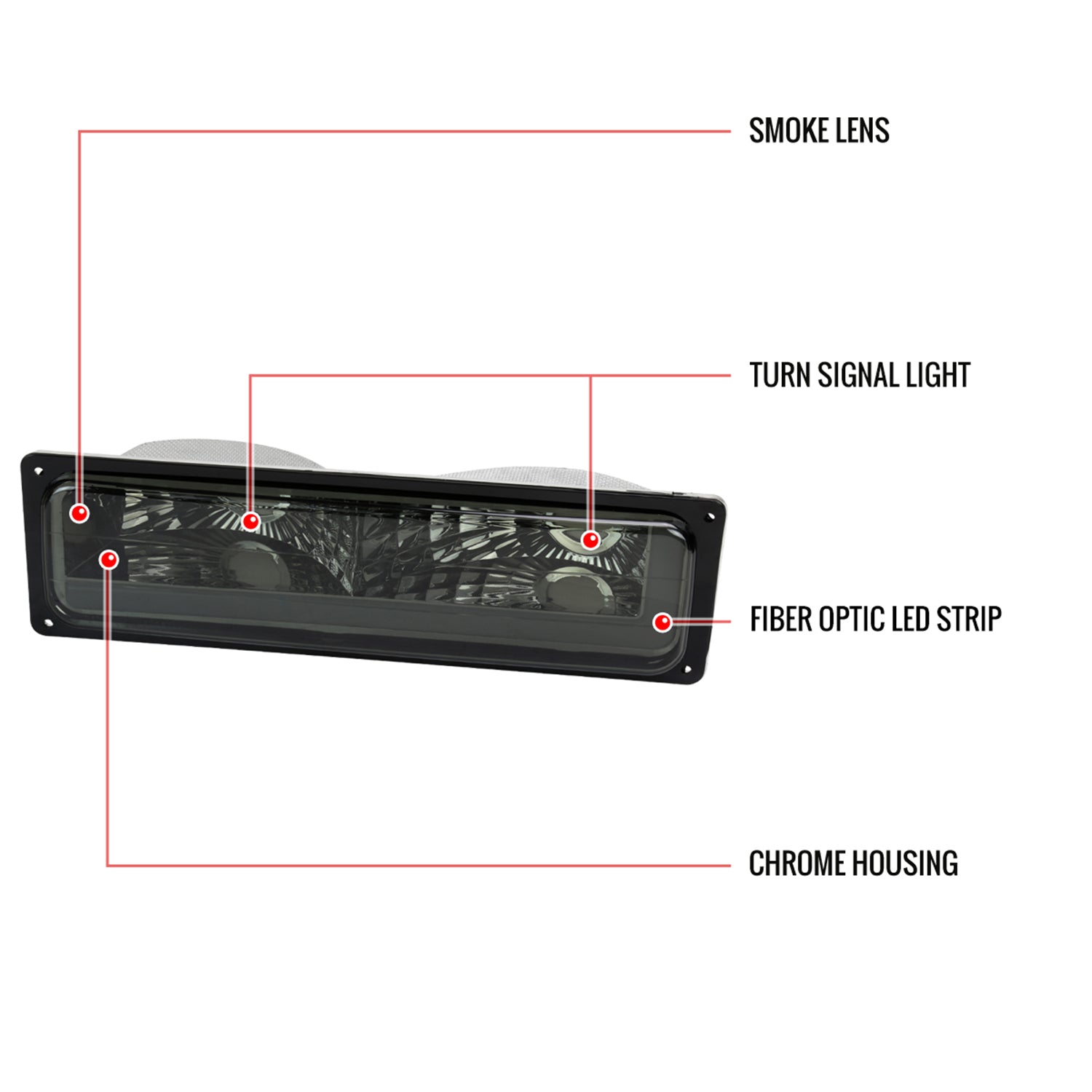 1988-1998 Chevy/GMC C10 C/K LED Strip Bumper Corner Signal Lights Chrome/Smoke