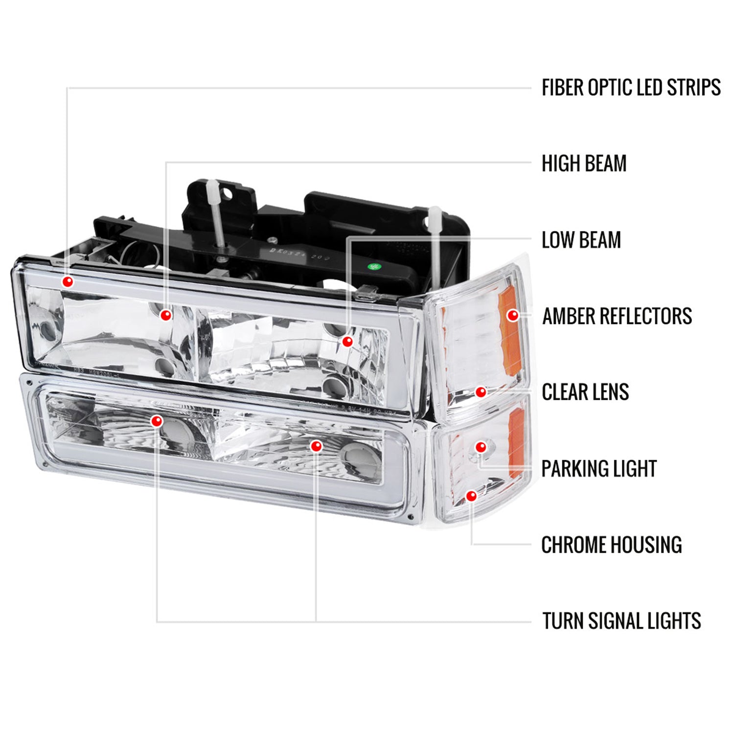 1994-1998 Chevy C10 C/K Tahoe Suburban LED Headlights &Corner Lights Chrome