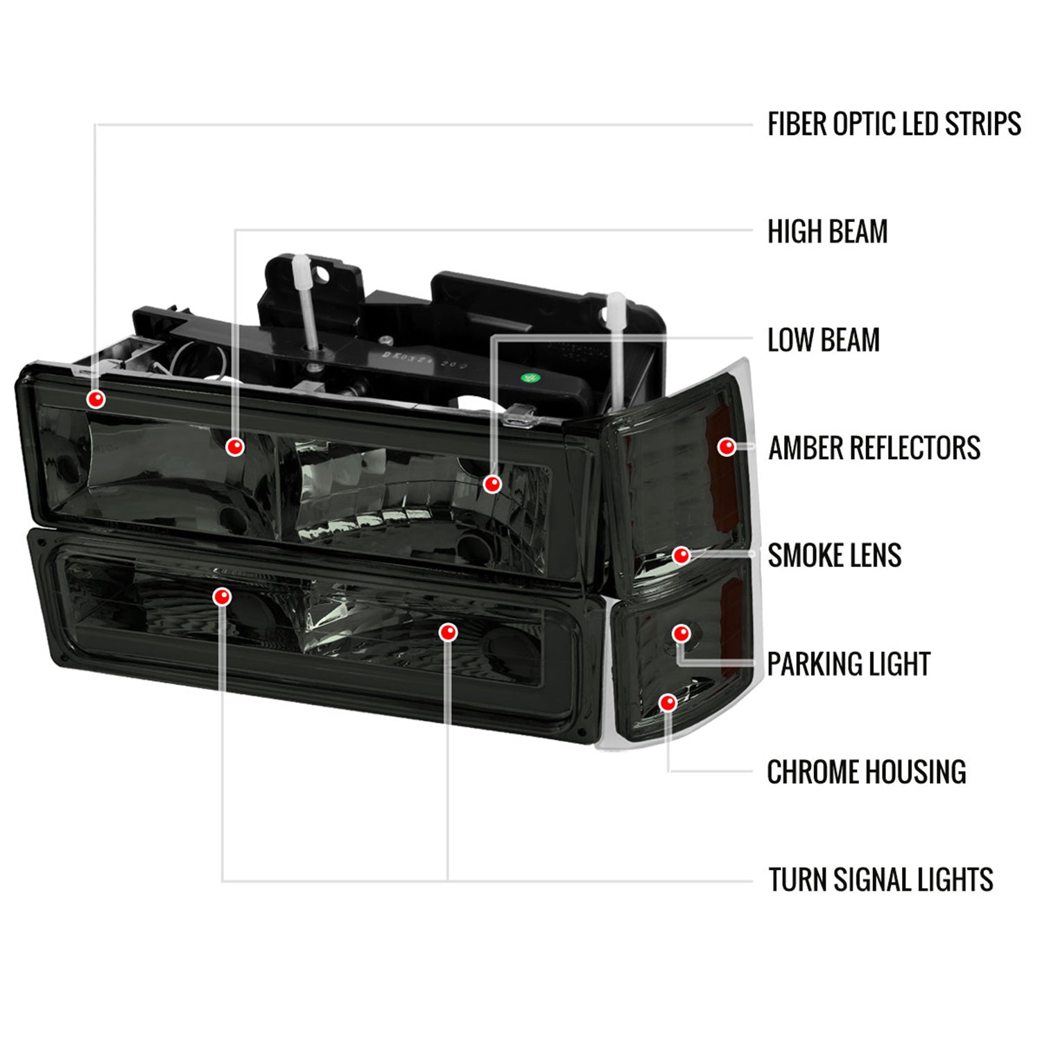 1994-1998 Chevy C10 C/K Tahoe Suburban LED Headlights &Corner Lights Smoked