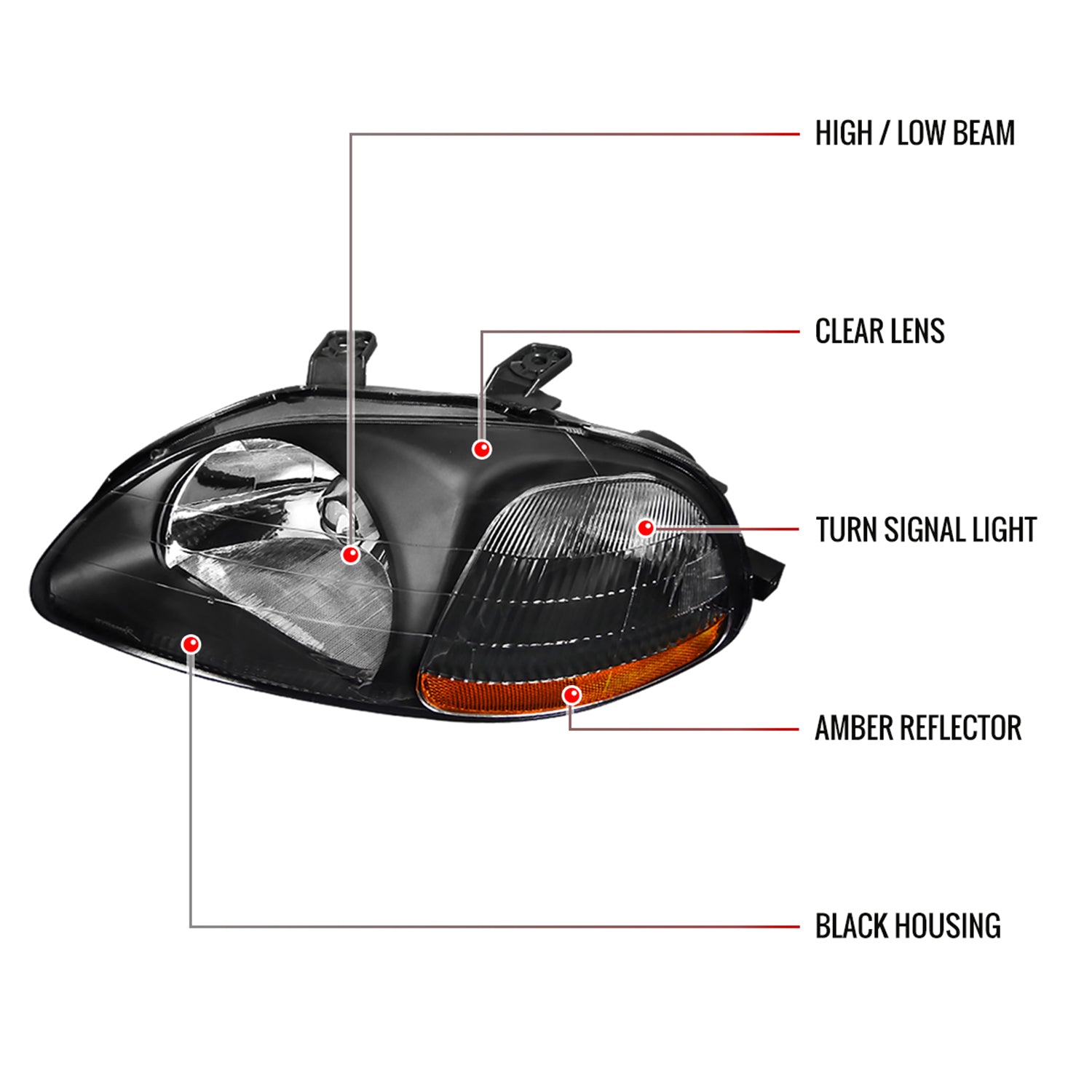 1996-1998 Honda Civic Factory Style Crystal Headlights Matte Black/Clear Lens