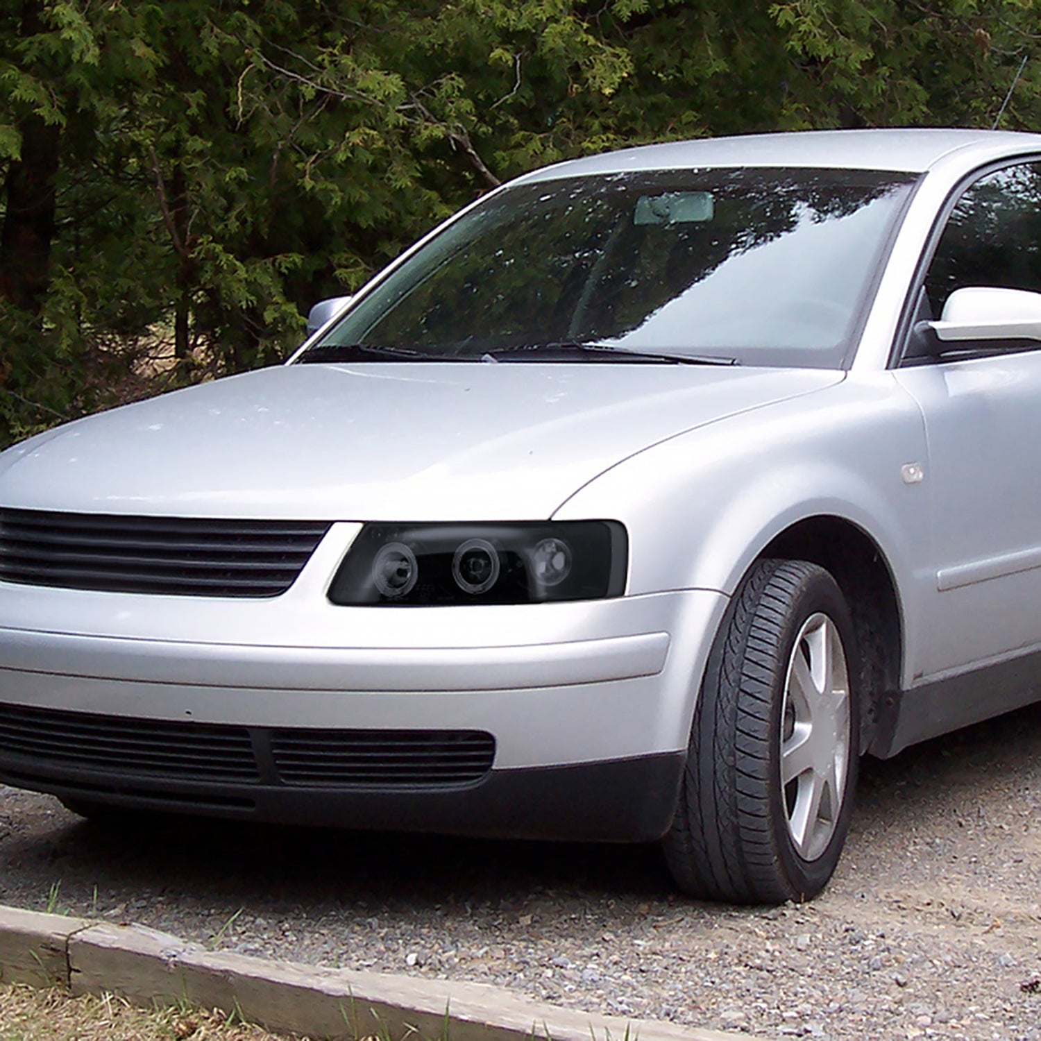 1997-2000 VW Passat Dual Halo Projector Headlights Glossy Black/Smoke Lens