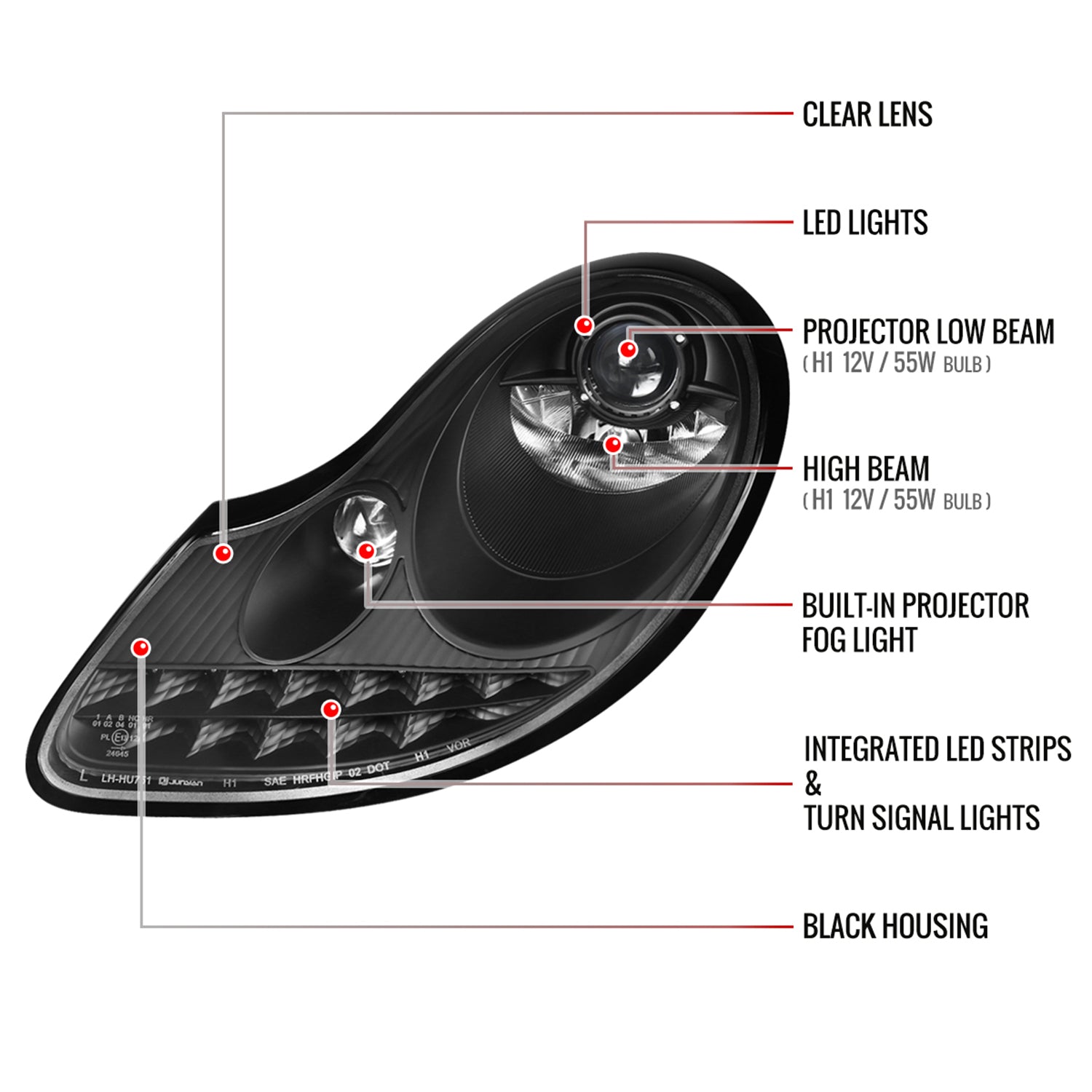1997-2004 Porsche Boxster 986/911 996 LED Light Headlights Signal Lights Black