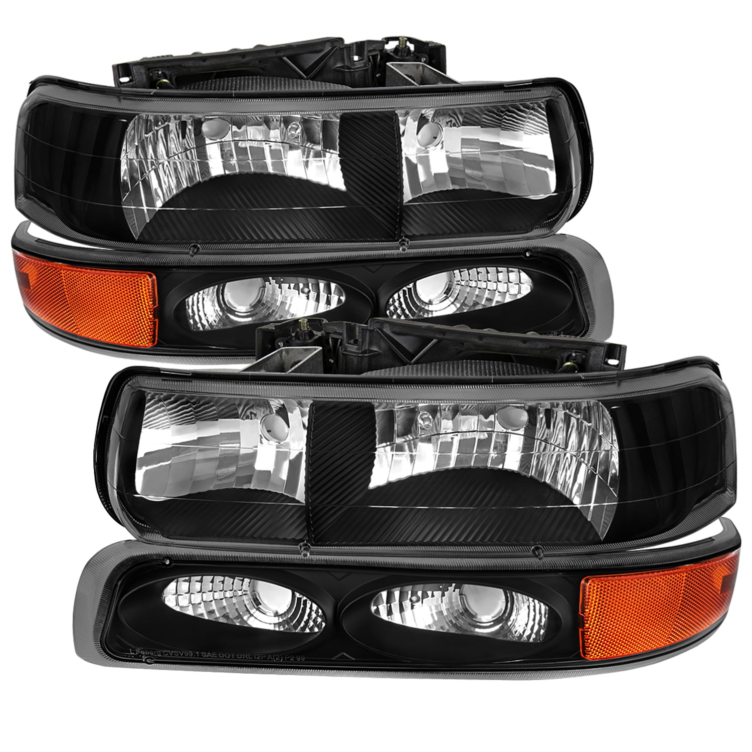 1999-2002 Chevy Silverado/ Tahoe/Suburban Factory Headlights Bumper Black