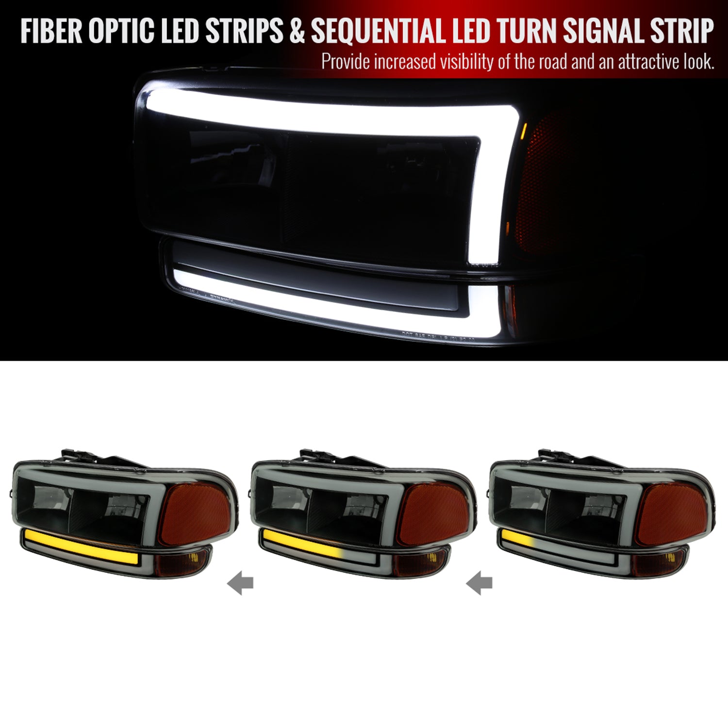 Upgrade your GMC Sierra or Yukon’s visibility and style with these smoke headlights and signal bumper lights. Enjoy safer nighttime driving and a modern look, making every commute or road trip more comfortable and confident—no more squinting through dim, outdated lights.