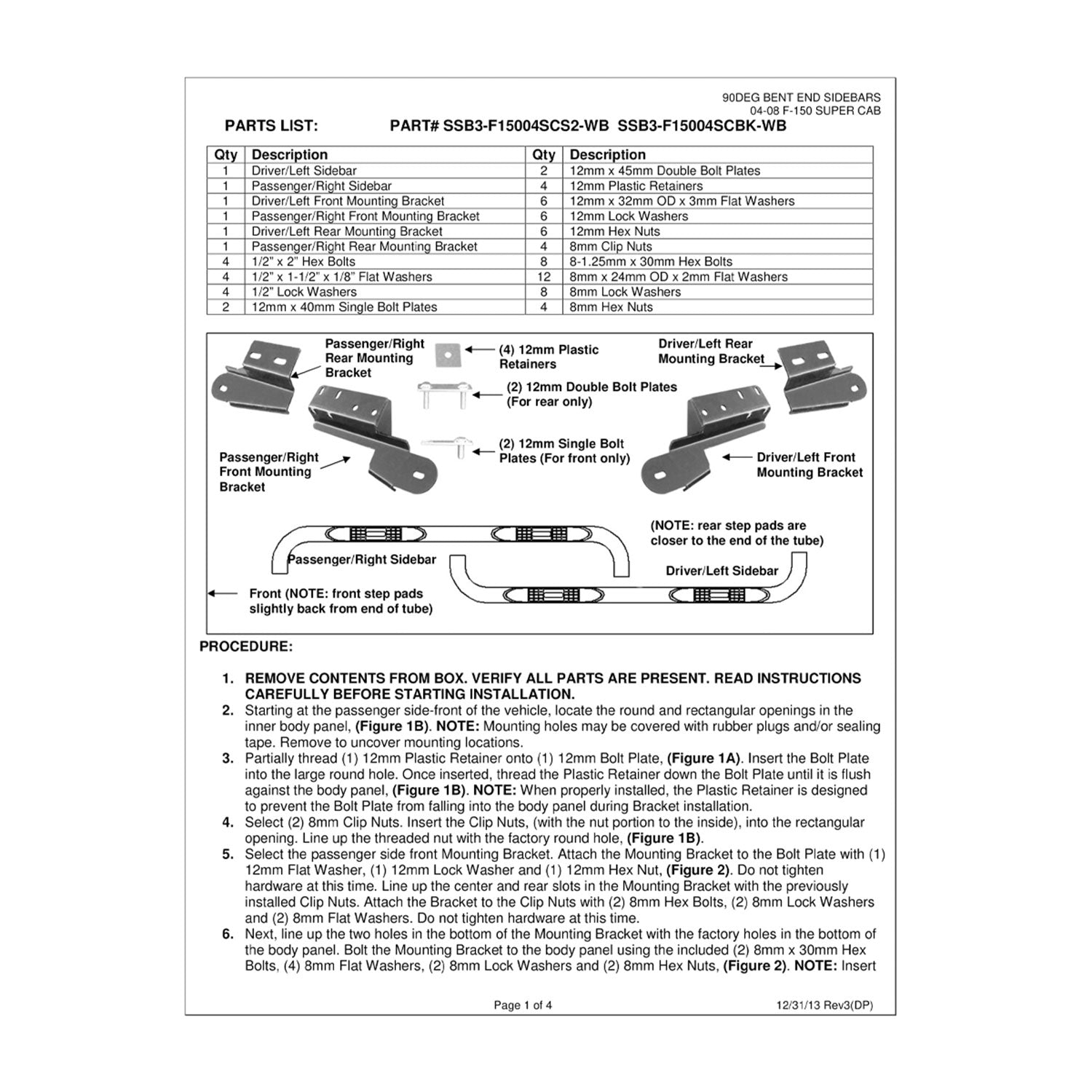 2004-2008 Ford F-150 Super Cab 3" Chrome Stainless Steel Side Step Nerf Bars
