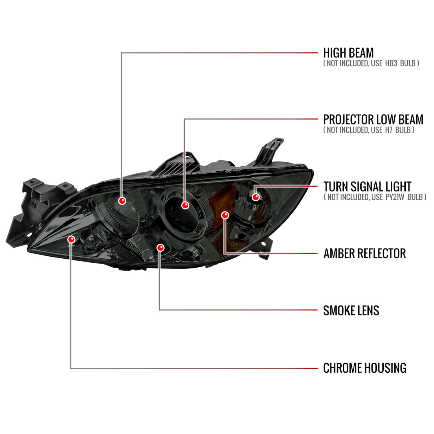 2004-2009 Mazda 3 Sedan Projector Style Headlights Chrome Housing/Smoke Lens