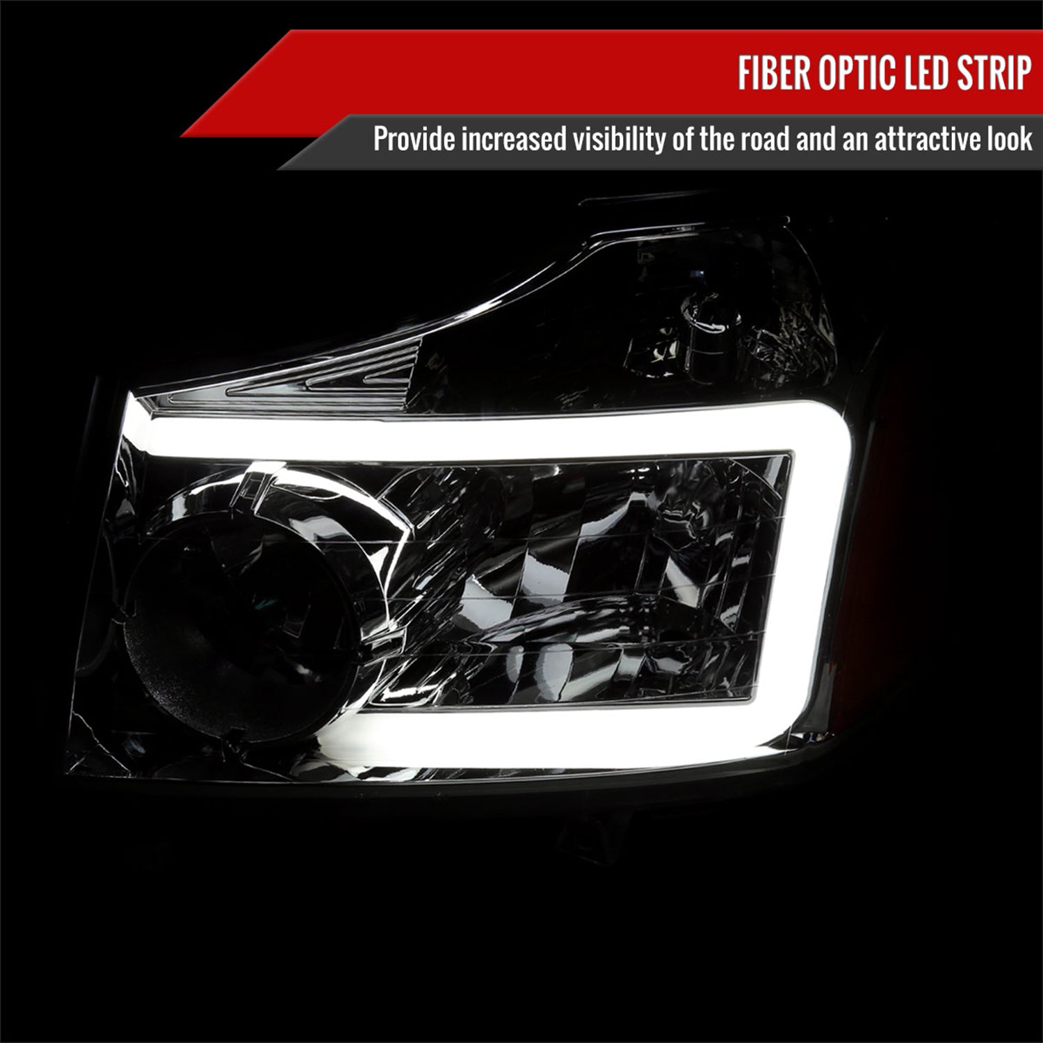 2004-2015 Nissan Titan / 04-2007 Armada LED Bar Factory Headlights Chrome/Clear