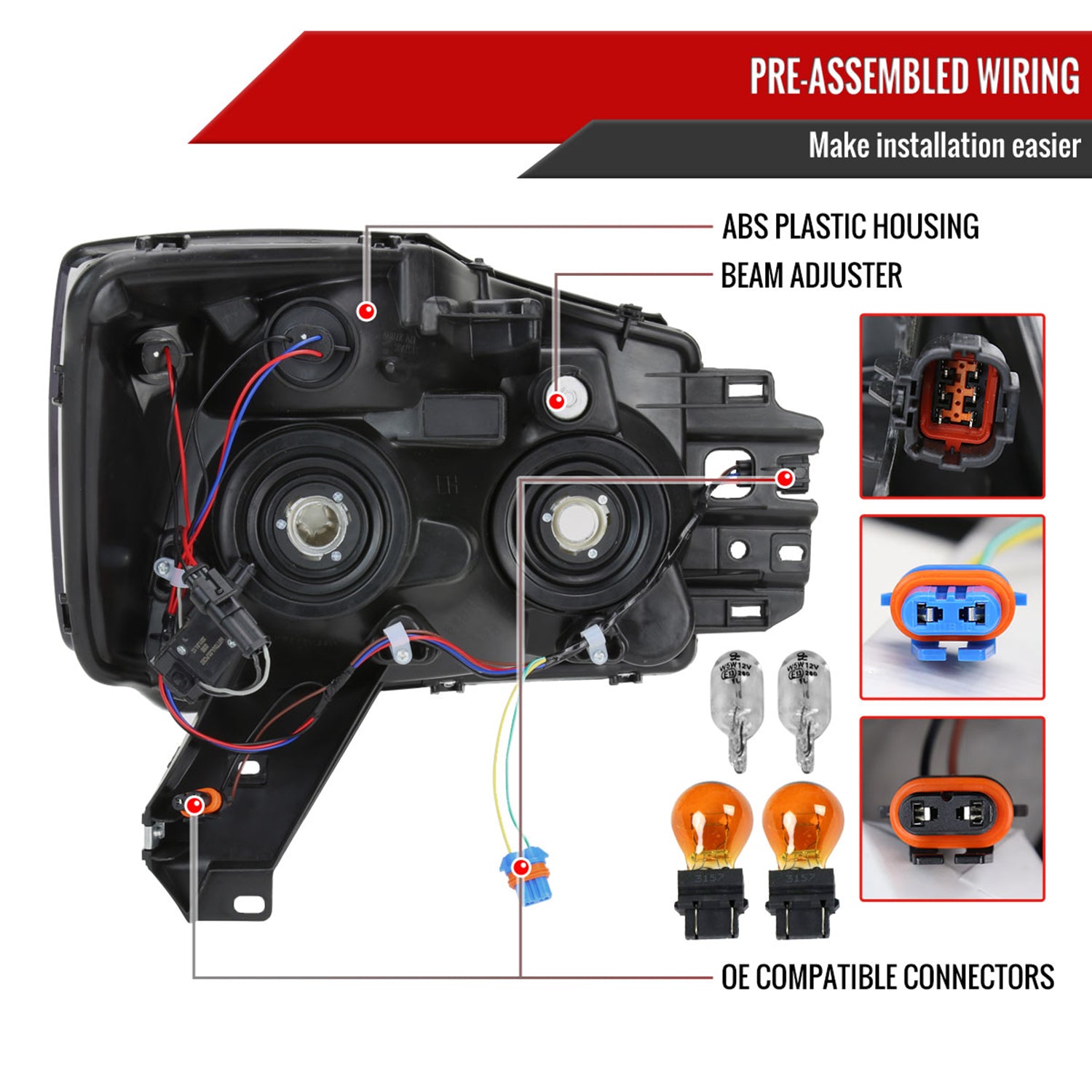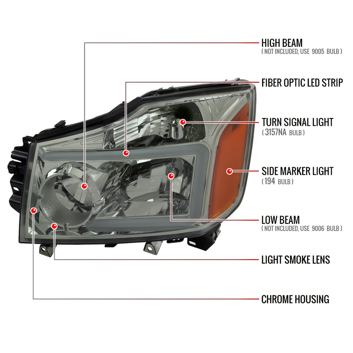 2004-2015 Nissan Titan / 04-2007 Armada LED Bar Factory Headlights Light Smoke