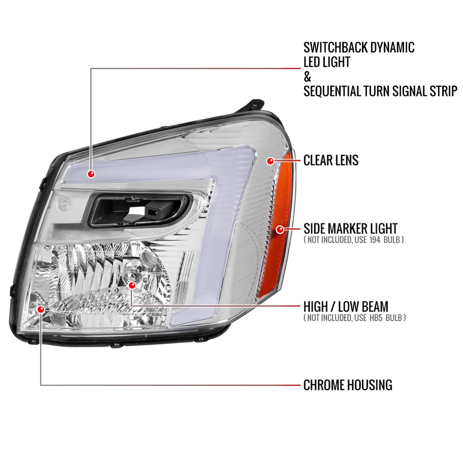 2005-2009 Chevy Equinox Factory Headlights LED Bar Turn Signal Chrome