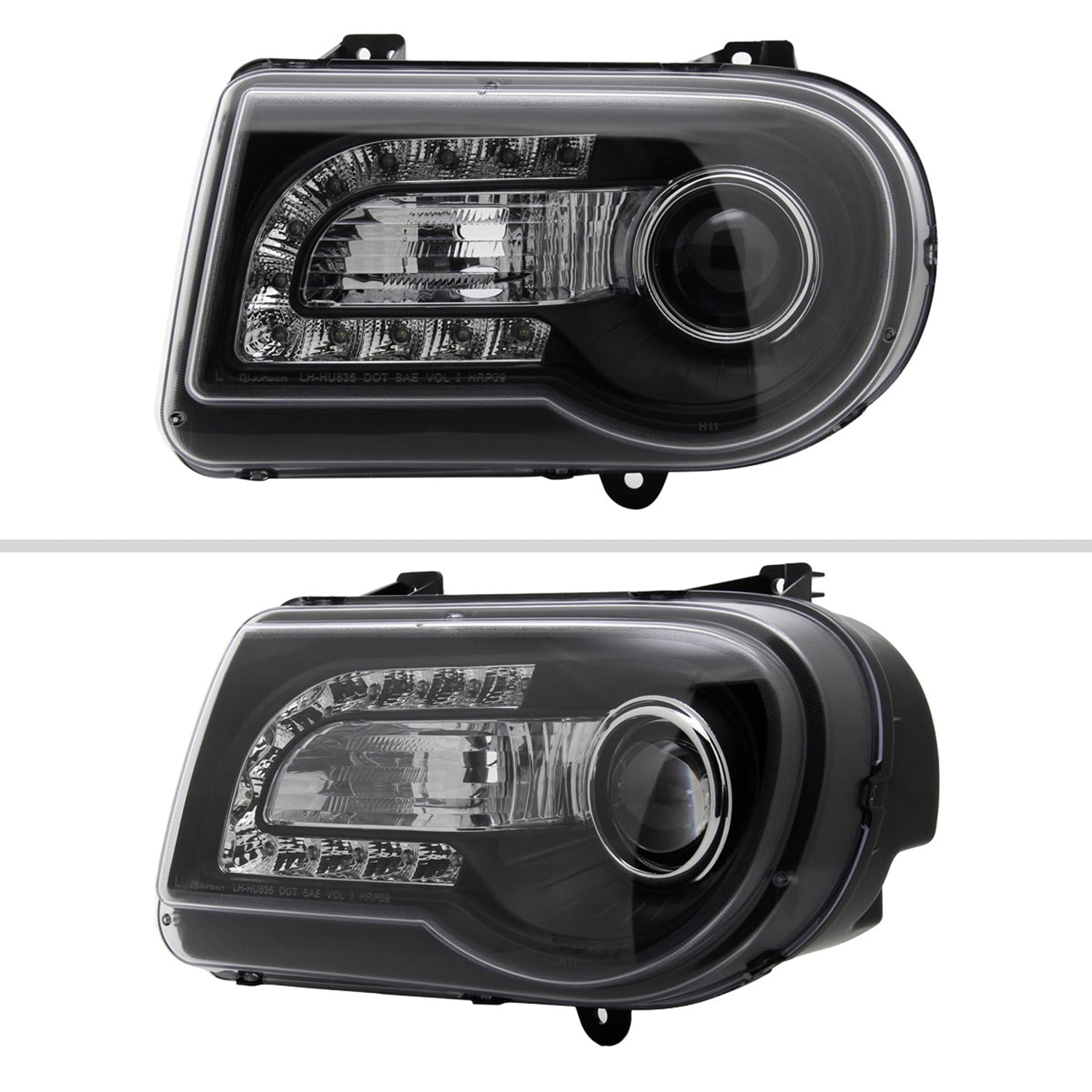 2005-2010 Chrysler 300 Projector Headlights w/LED Light Strip Matt Black/Clear
