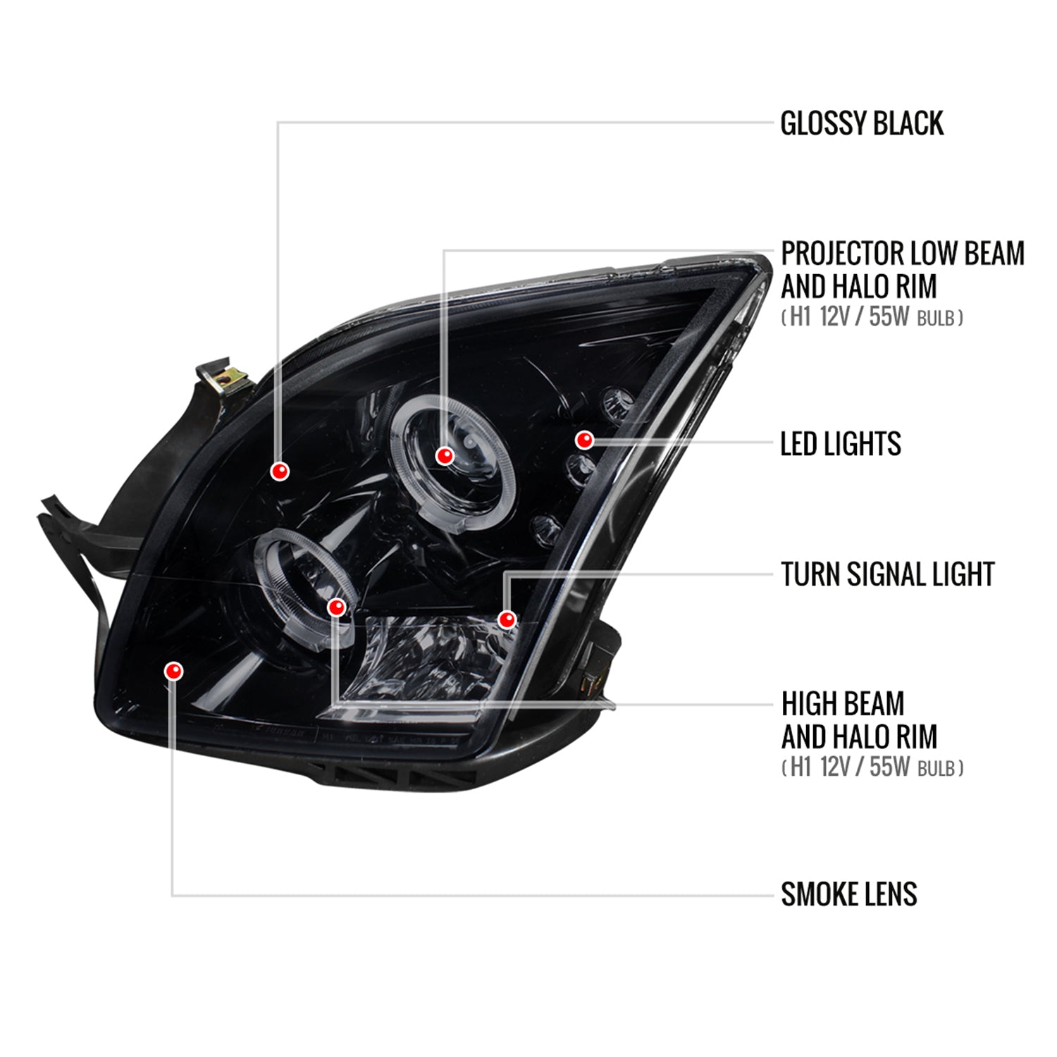 2006-2009 Ford Fusion Dual Halo Projector Headlights Glossy Black/Smoke Lens