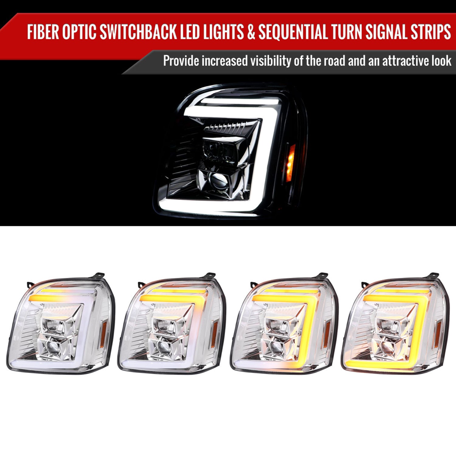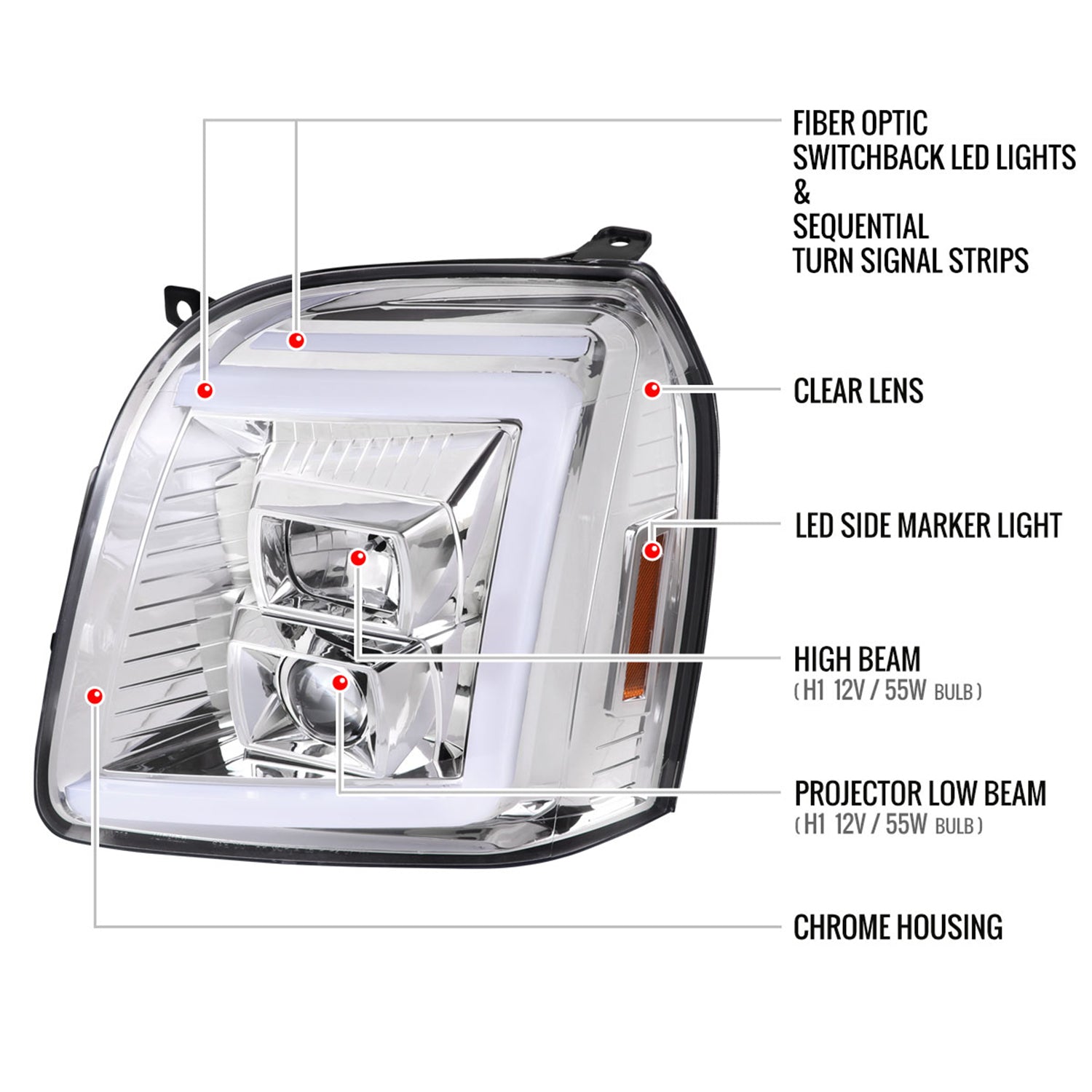 2007-2014 GMC Yukon/XL 1500/XL 2500 LED Signal Projector Headlights Chrome