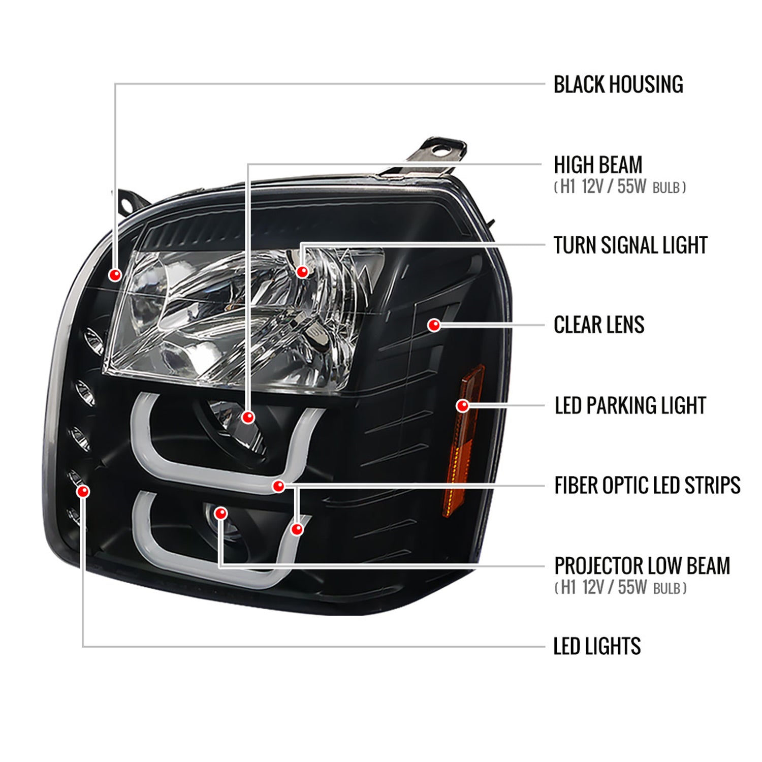 Upgrade your Yukon’s nighttime visibility and style with modern LED U-Bar projector headlights. These assemblies make evening drives safer and give your GMC a bold, refreshed look—perfect for drivers who want confidence and curb appeal after dark.