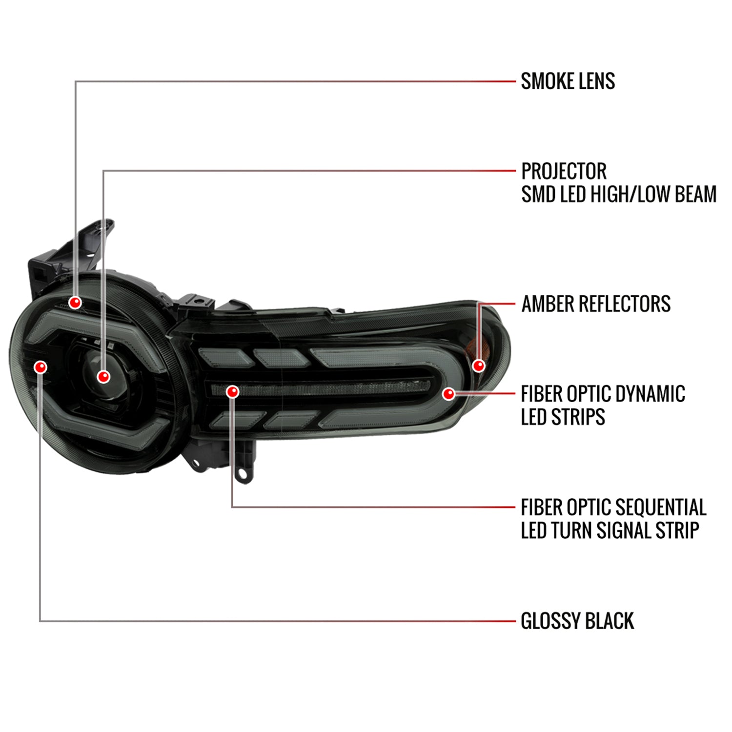 Upgrade your 2007–2014 Toyota FJ Cruiser’s visibility and style with full LED projector headlights featuring LED signals and a smoked finish. Enjoy safer nighttime driving and a modern look that stands out on every adventure, whether you’re commuting or hitting the trails.
