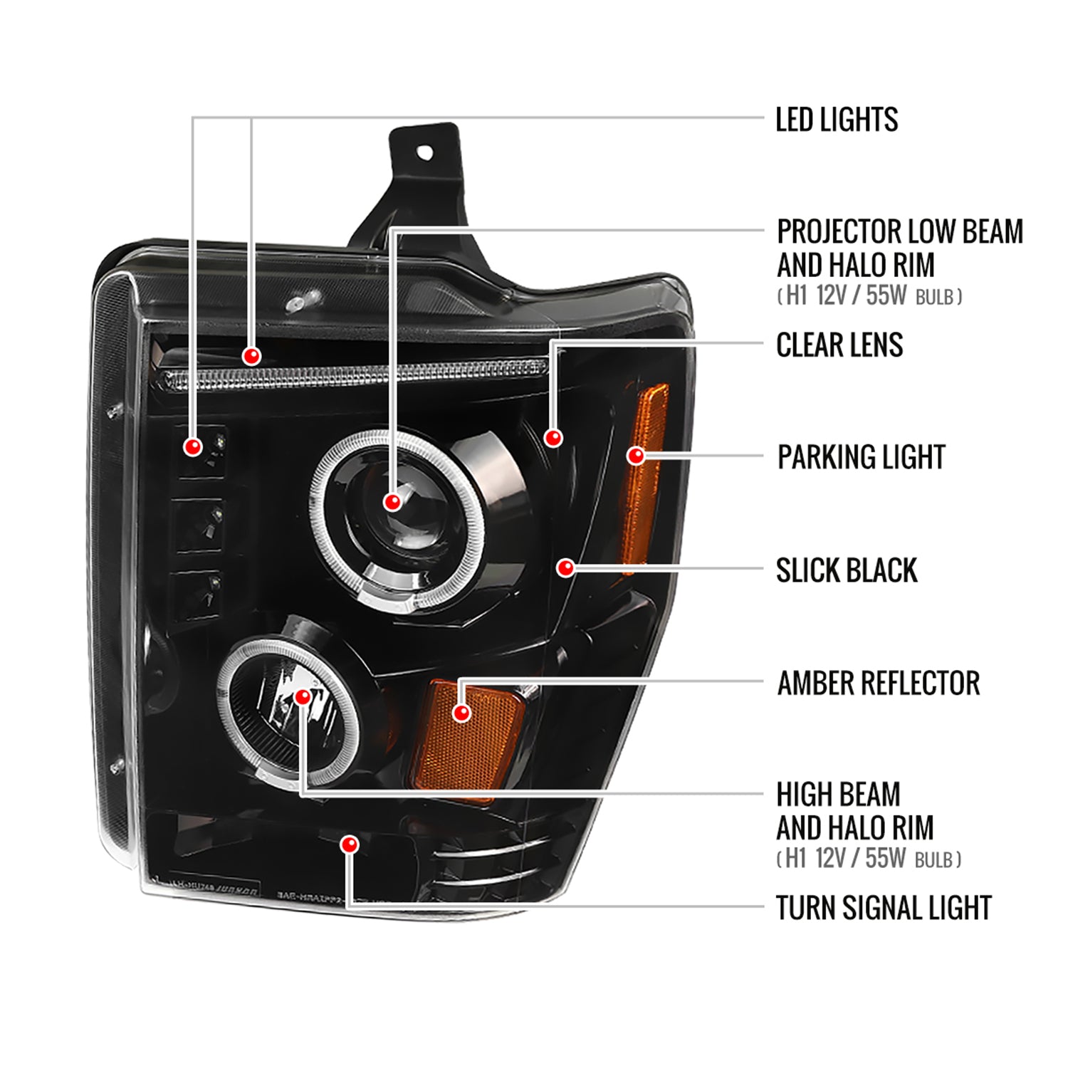 Upgrade your Ford Super Duty’s nighttime visibility and style with dual halo projector headlights. These assemblies make late-night drives safer and give your truck a bold, modern look—perfect for drivers who want to see and be seen, whether on the job or heading out for a weekend adventure.
