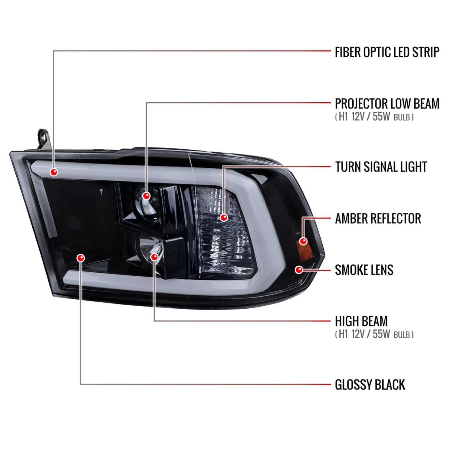 2009-2018 Dodge RAM 1500 / 2500 3500 LED C-Bar Headlights Glossy Black