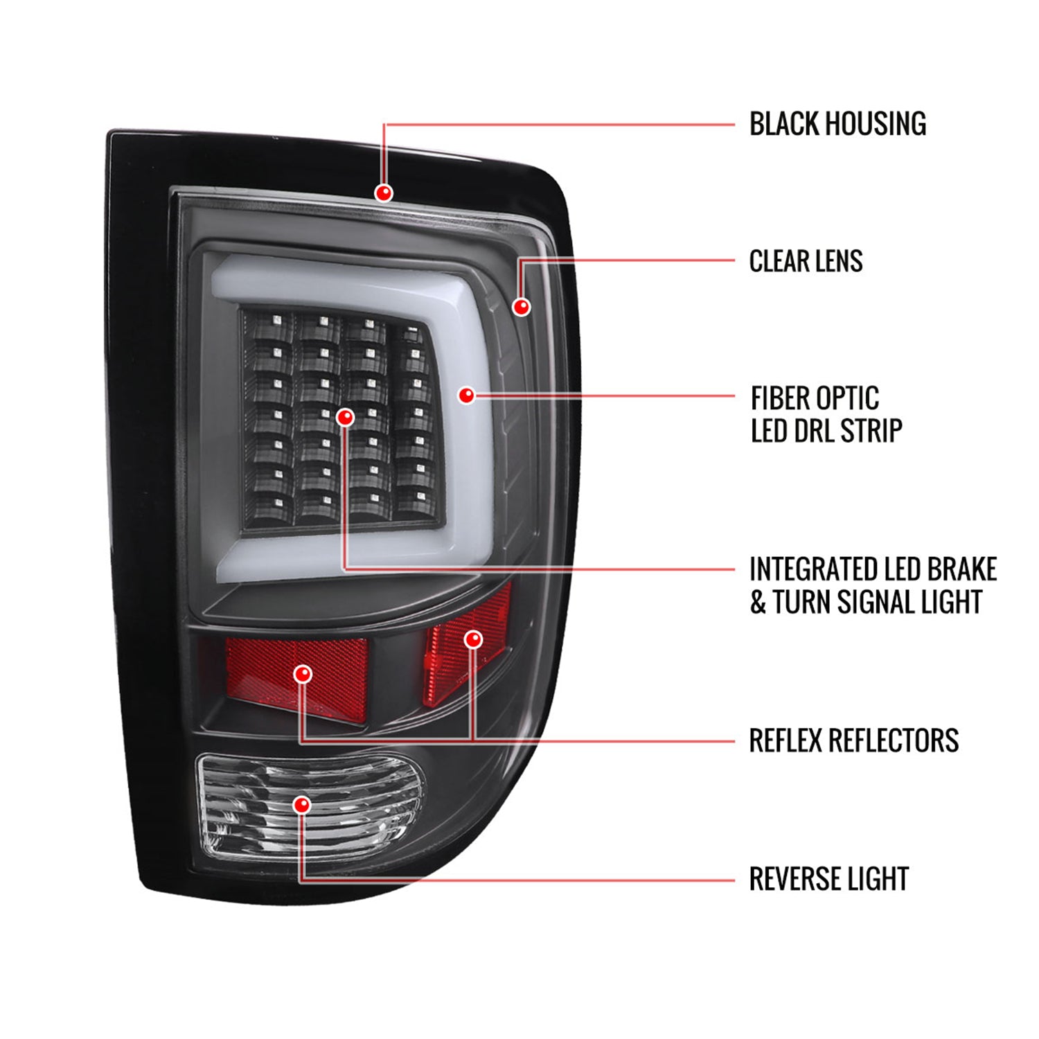 2009-2018 Dodge RAM 1500 2500 3500 White Bar LED Tail Lights Matt Black