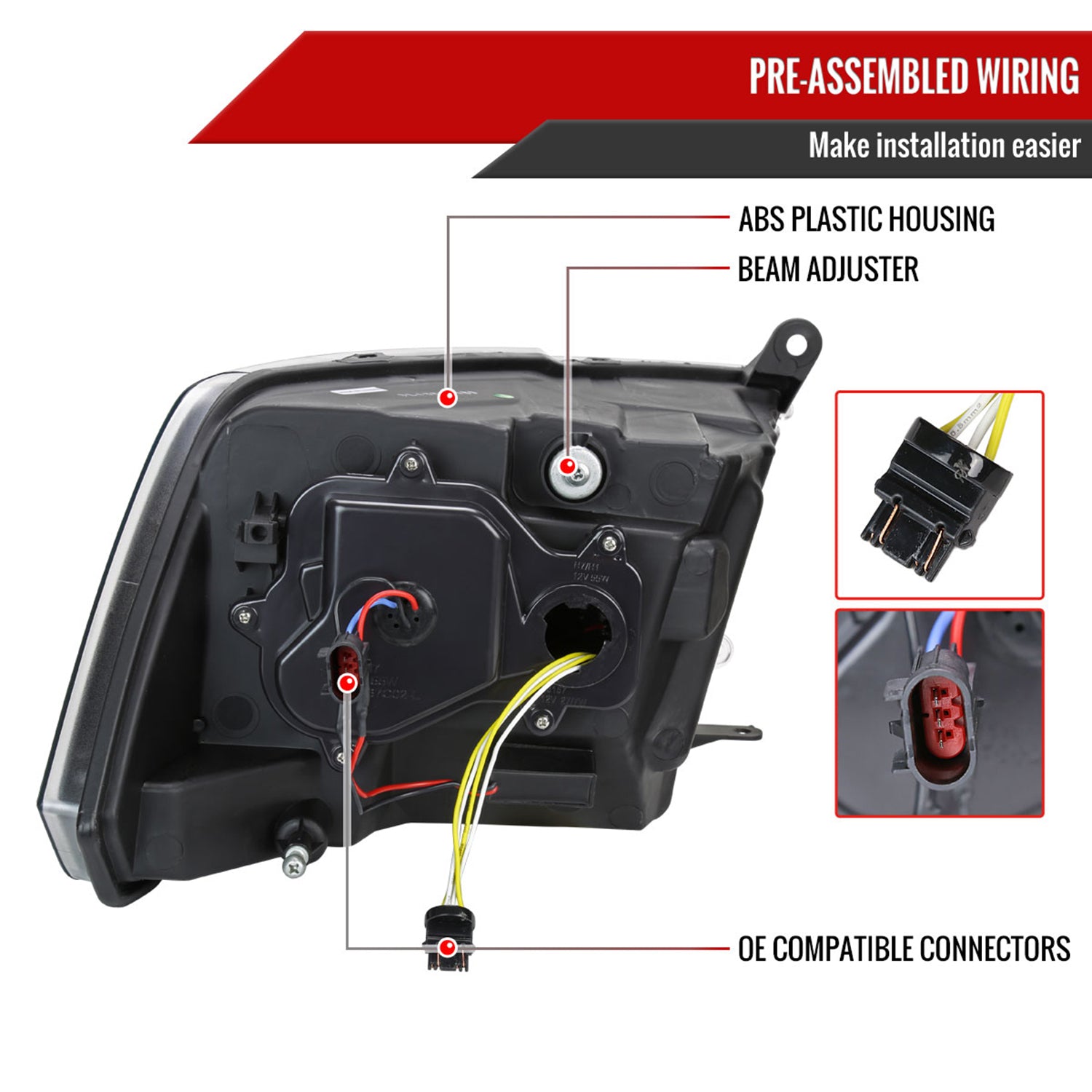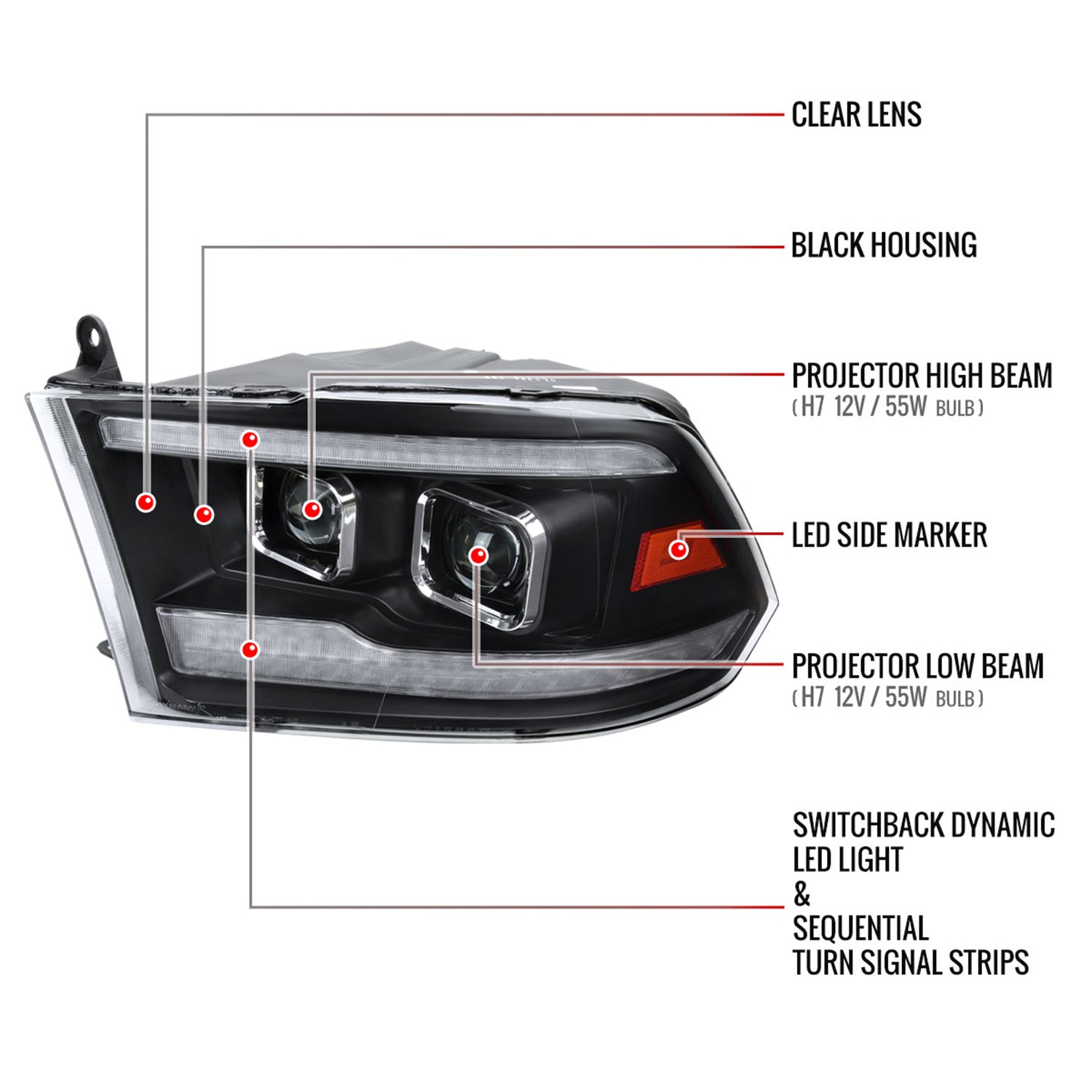 2009-2018 Dodge RAM 1500 / RAM 2500 3500 Switchback Headlights Matte Black