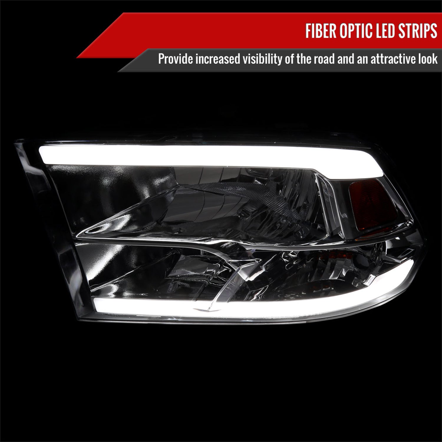 2009-2019 Dodge Ram 1500 2500 3500 Quad Headlights w/LED Tube Chrome/Clear