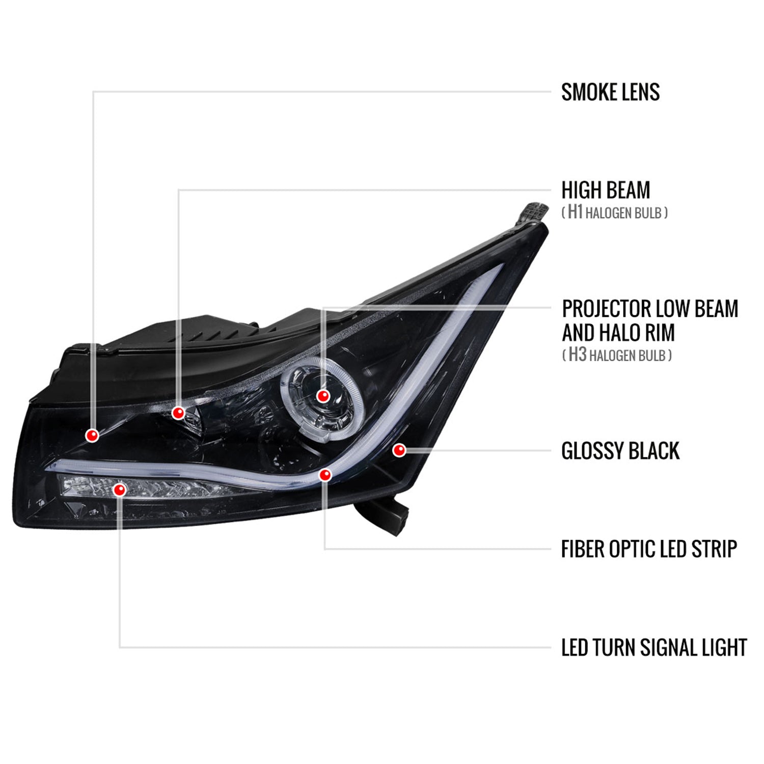 2011-2015 Chevy Cruze / 16 Cruze Limited Headlights LED Light & Signal Black