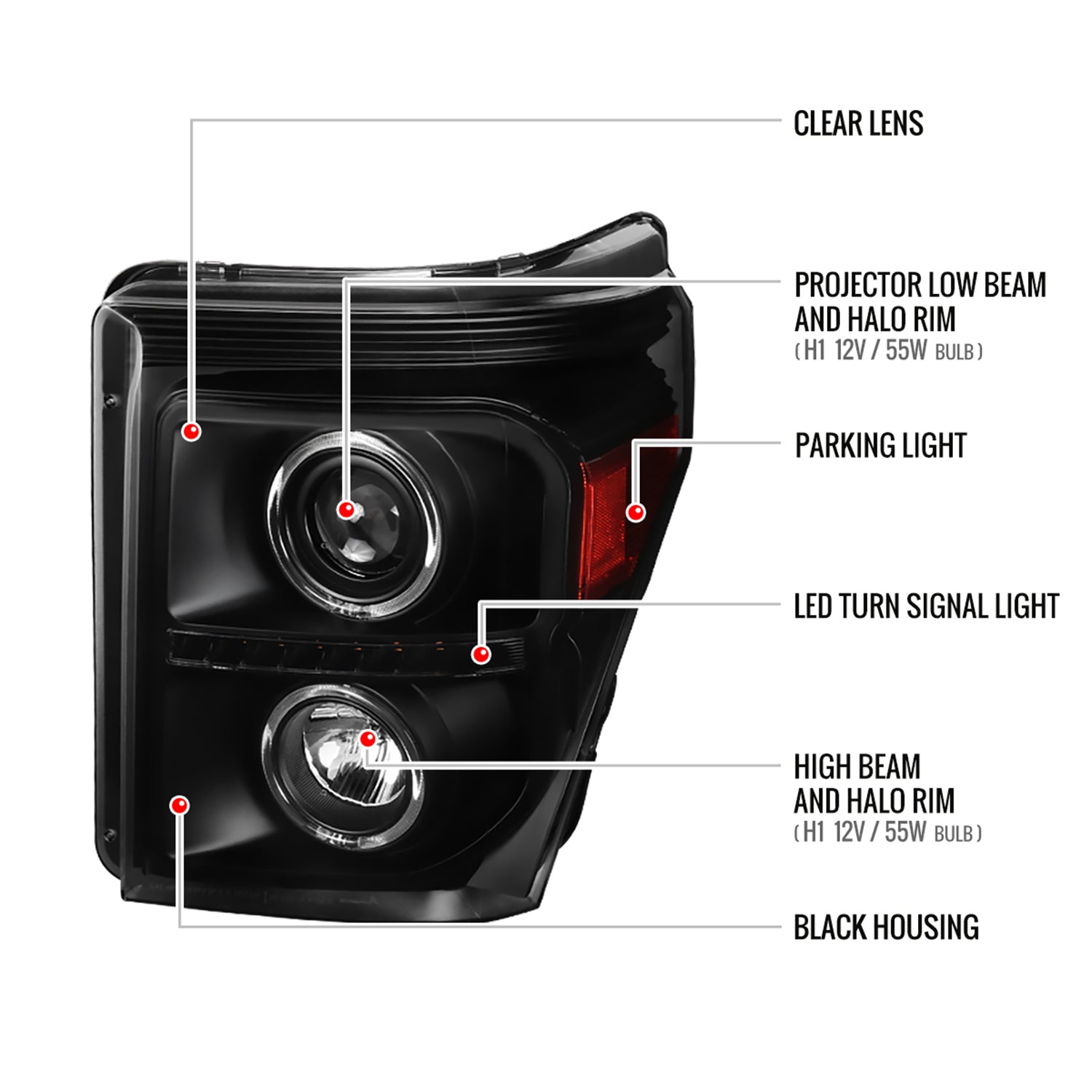 2011-2016 F-250 F-350 F-450 F-550 Dual Halo Headlights LED Signal Lights Black