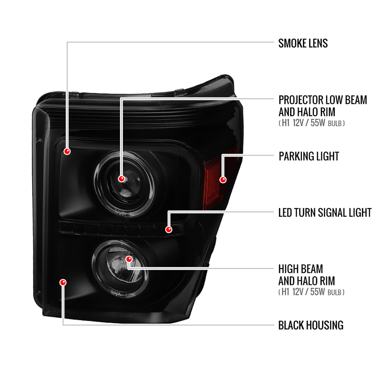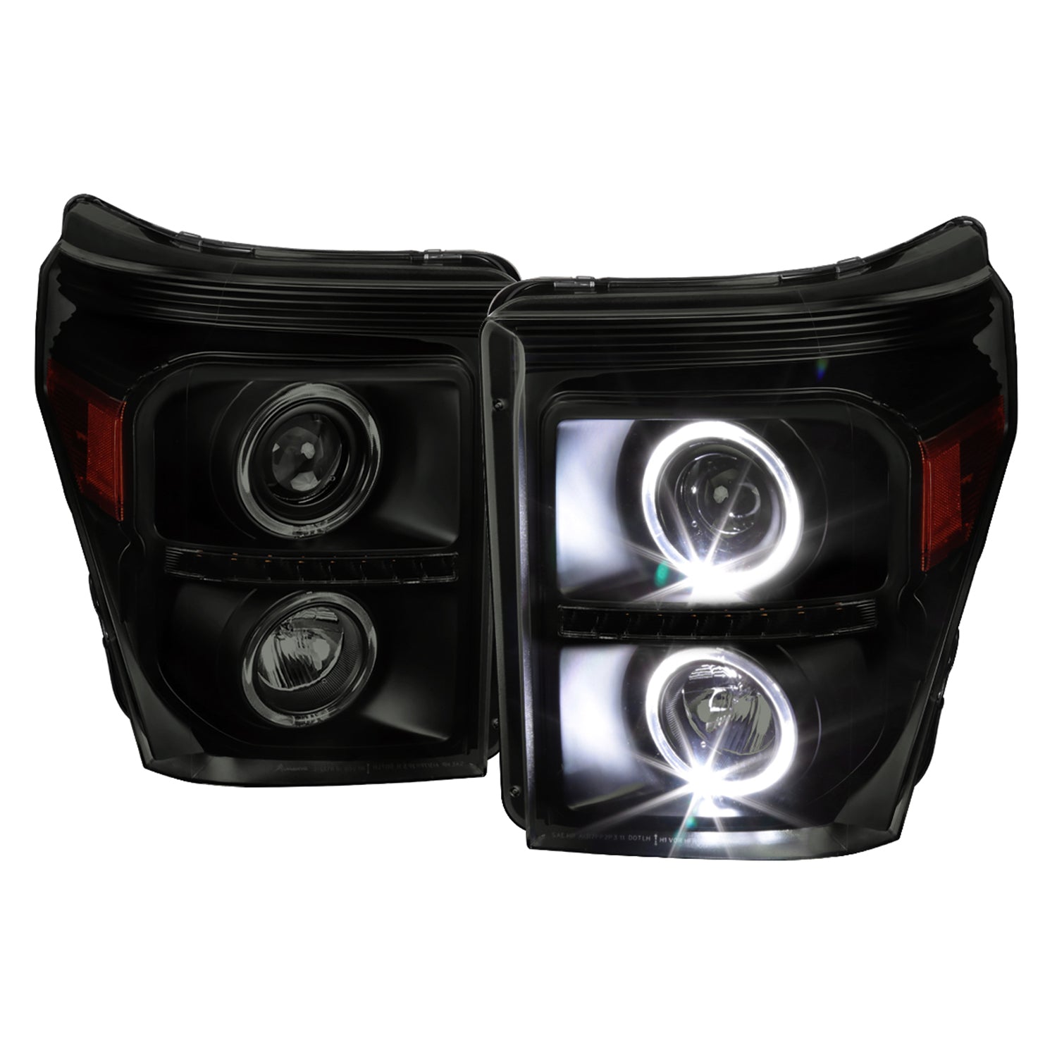 2011-2016 F-250 F-350 F-450 F-550 Dual Halo Headlights LED Signal Lights Smoke