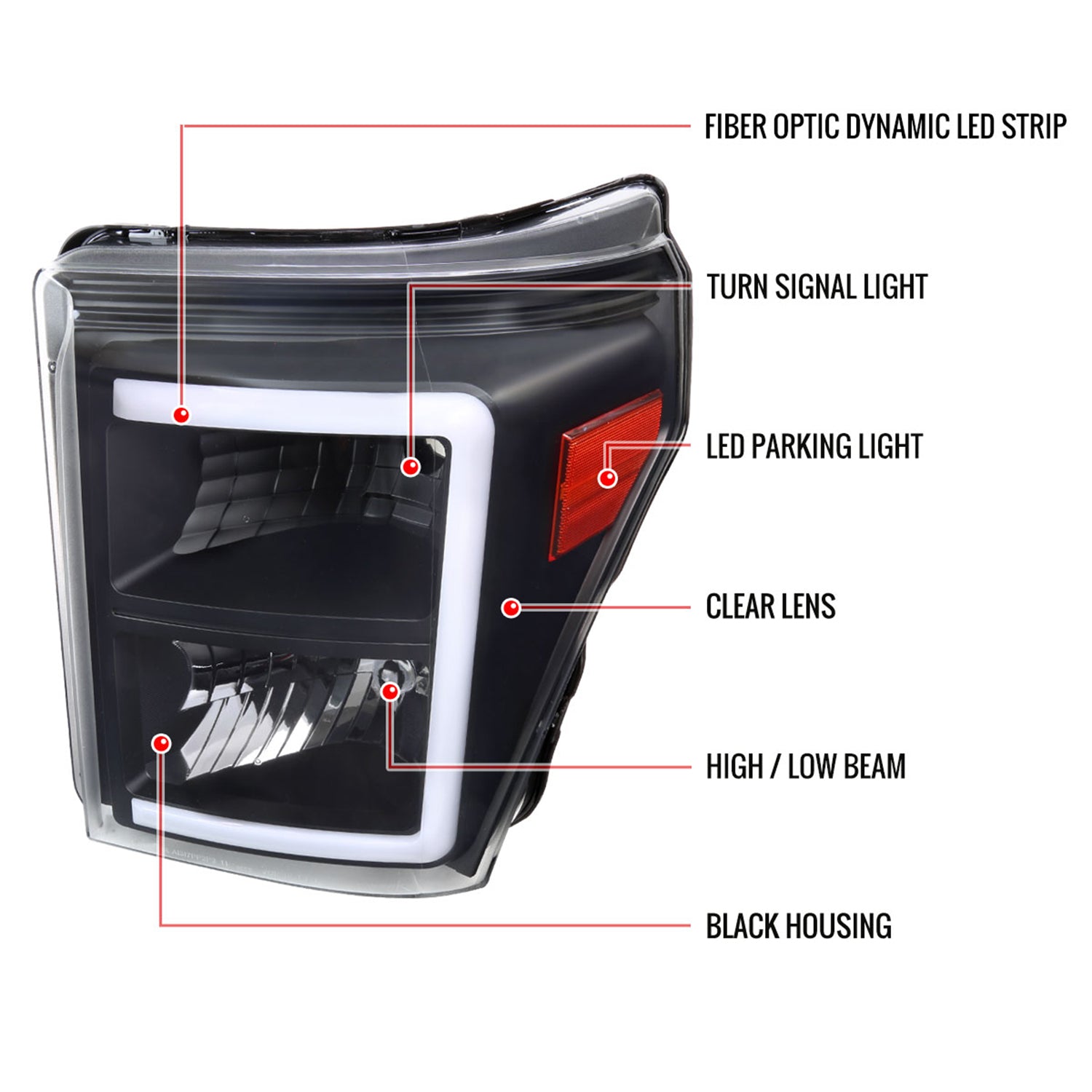 2011-2016 Ford F-250/350/450/550 Super Duty LED CBar Factory Headlights Black