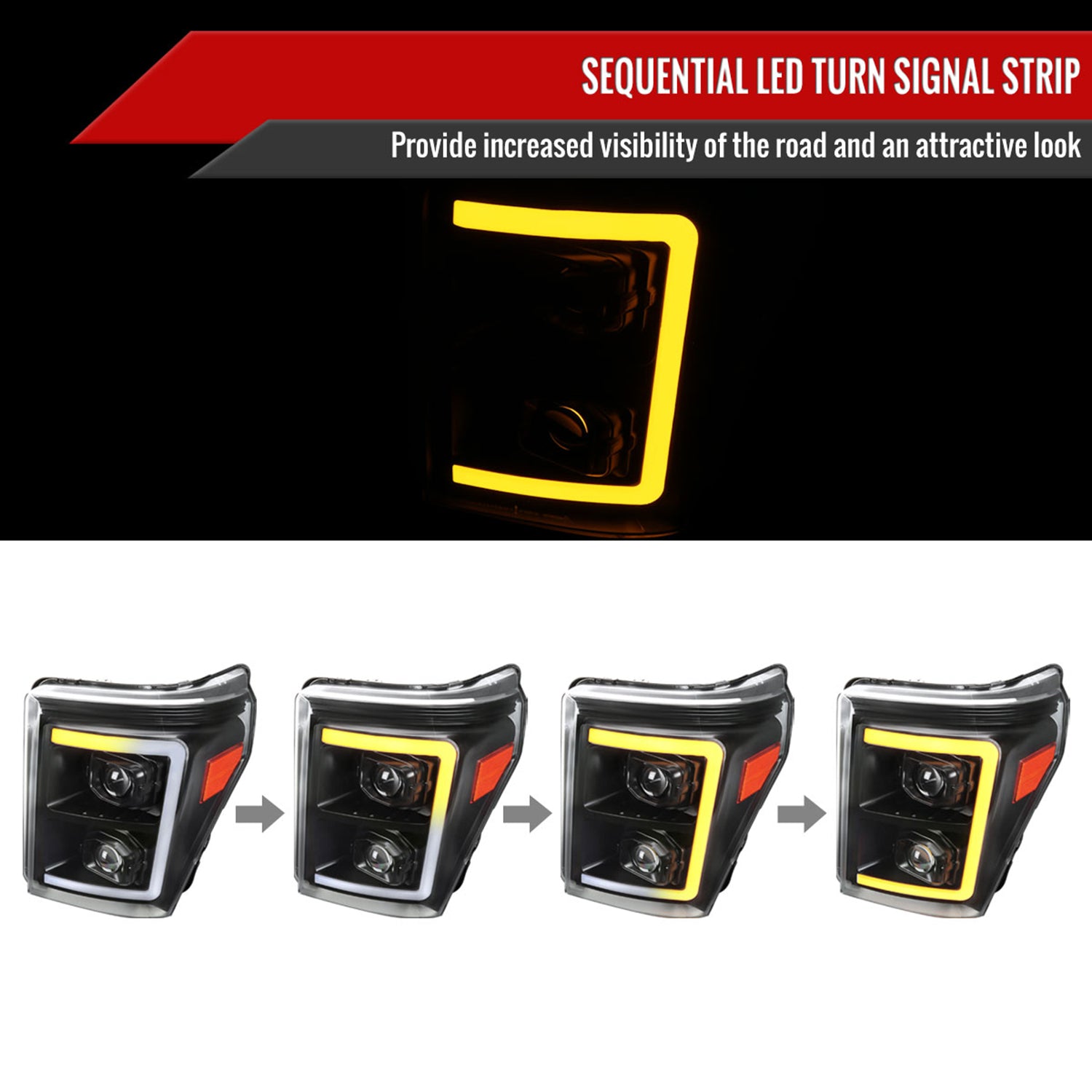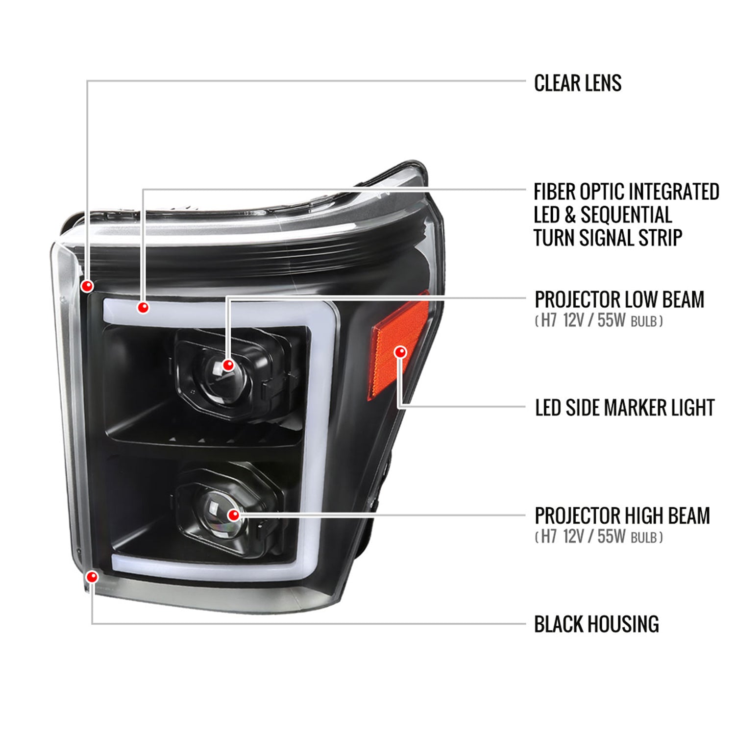 2011-2016 Ford F-250 F-350 F-450 F-550 LED CBar Projector Headlights Black