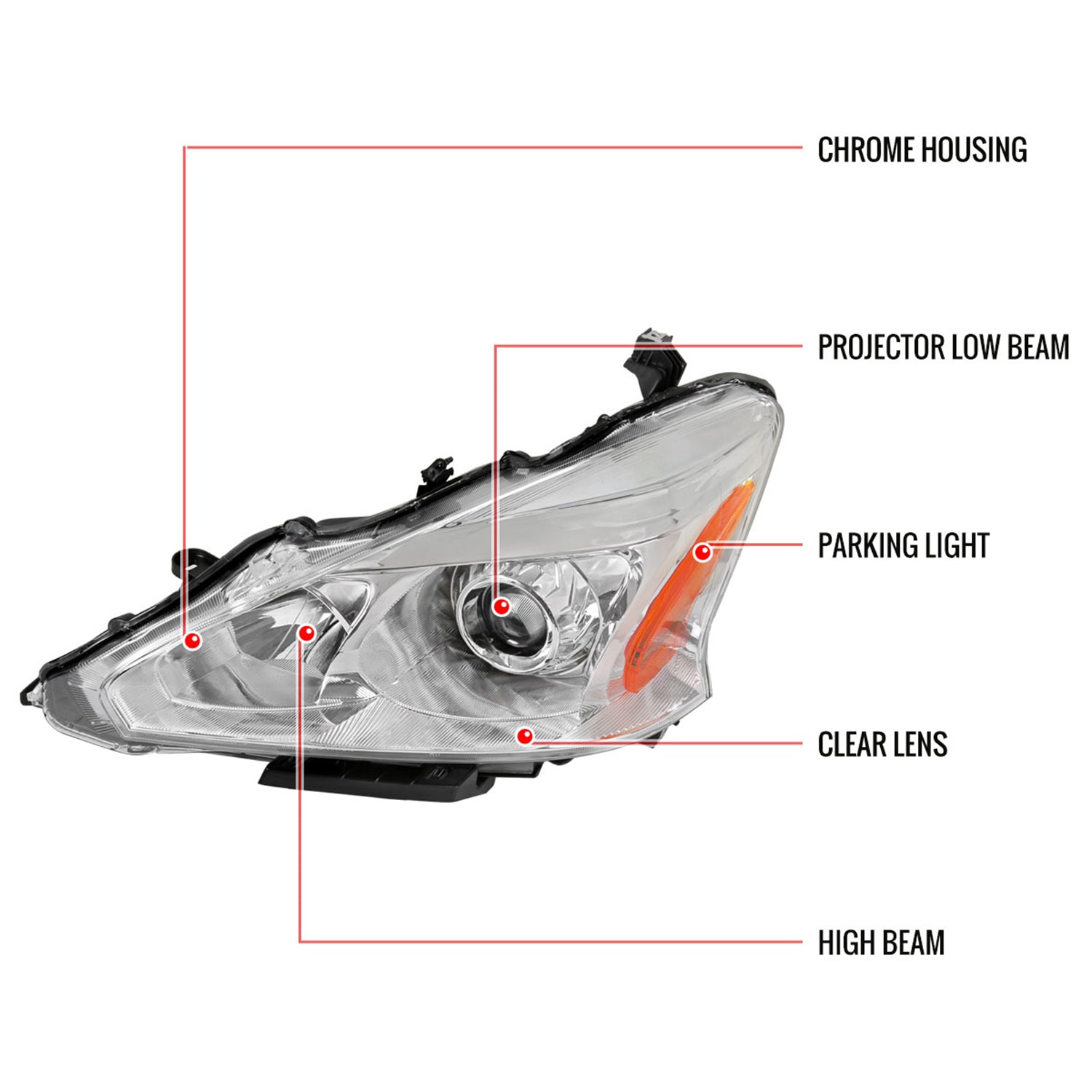 Upgrade your 2013–2015 Nissan Altima’s visibility and style with a clear projector headlight featuring an amber reflector on the driver side. Enjoy safer nighttime driving and a refreshed look that helps you see and be seen, whether you’re commuting or running errands after dark.