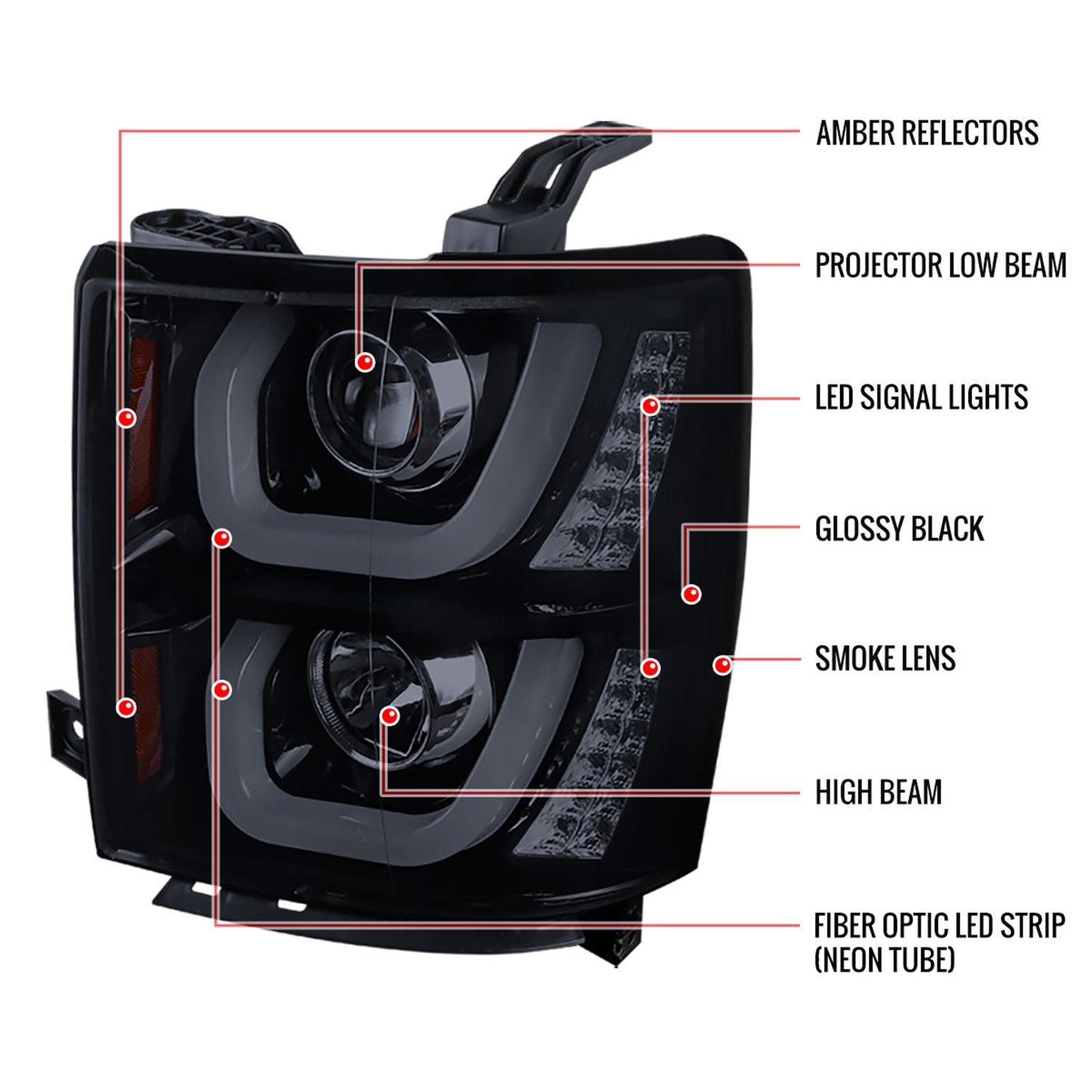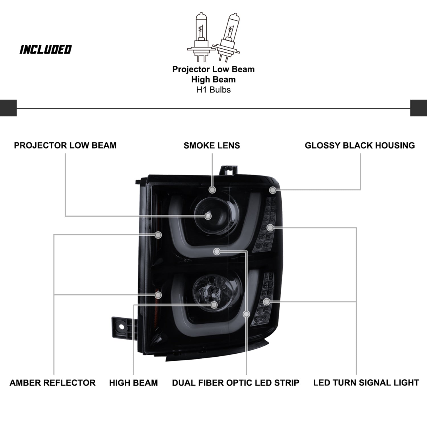 2014-2015 Chevy Silverado 1500 LED U-Bar Headlights LED Signal Lights Smoke