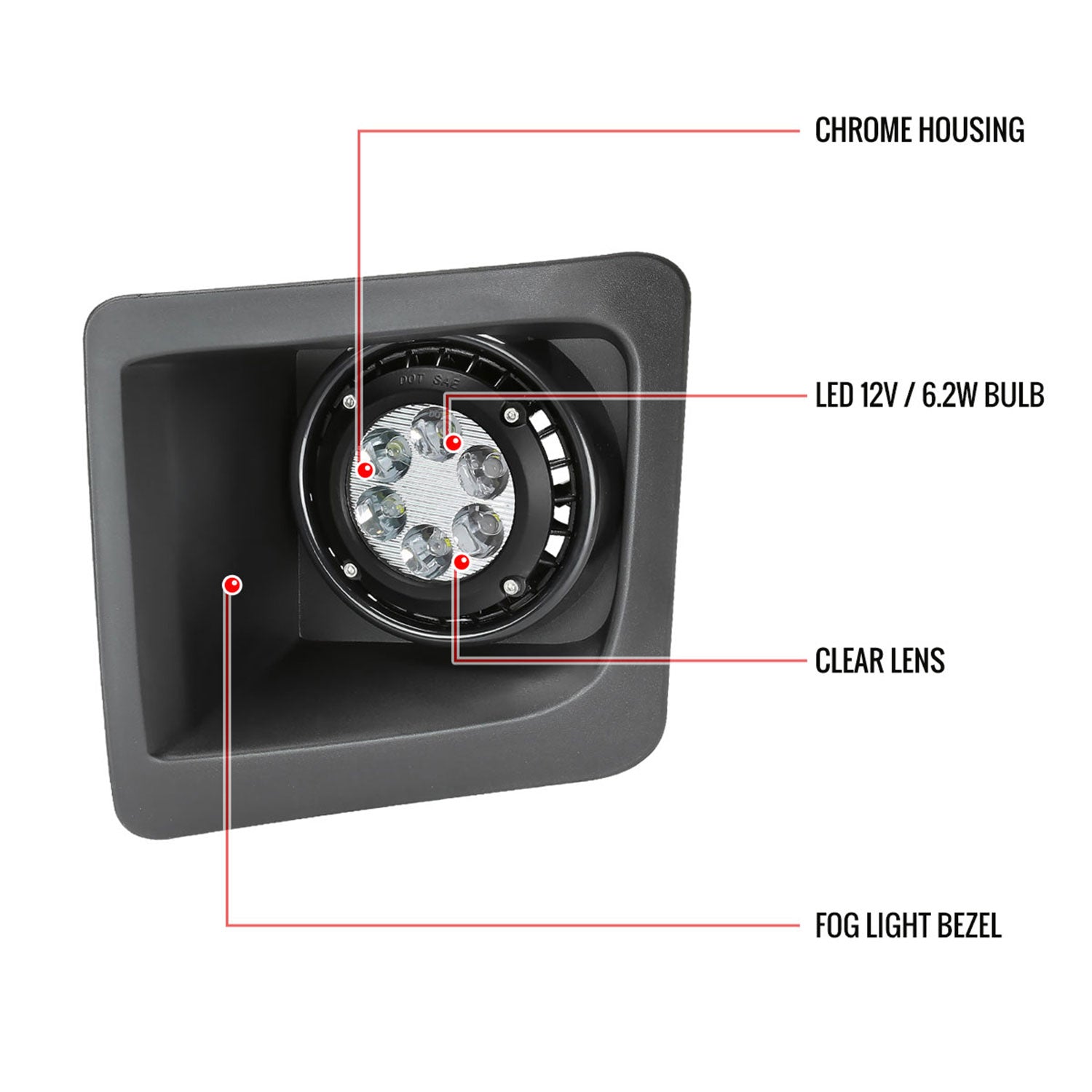 2014-2015 GMC Sierra 1500 LED Fog Lights Kit Switch & Wiring Harness Chrome