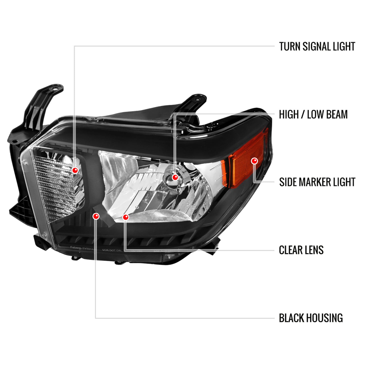 2014-2021 Toyota Tundra Factory Crystal Headlights Amber Reflectors Matt Black
