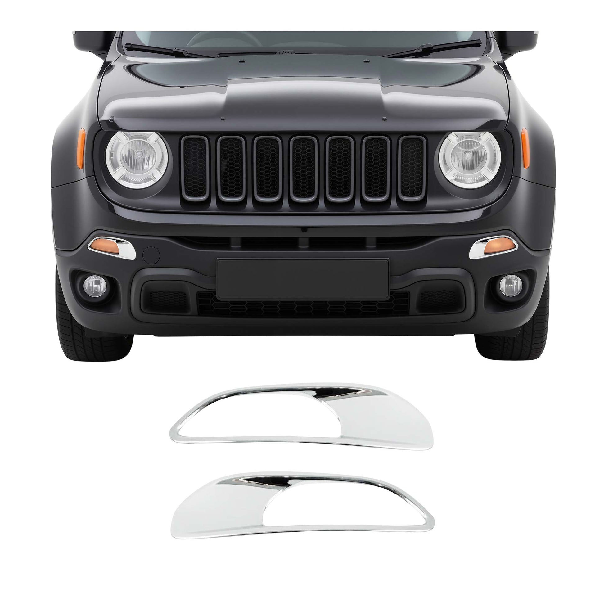 Give your Jeep Renegade a stylish upgrade and extra protection with these chrome headlight trim bottoms. They add a touch of shine while shielding your headlights from scratches and road debris—perfect for drivers who want their ride to stand out and stay looking sharp every day.
