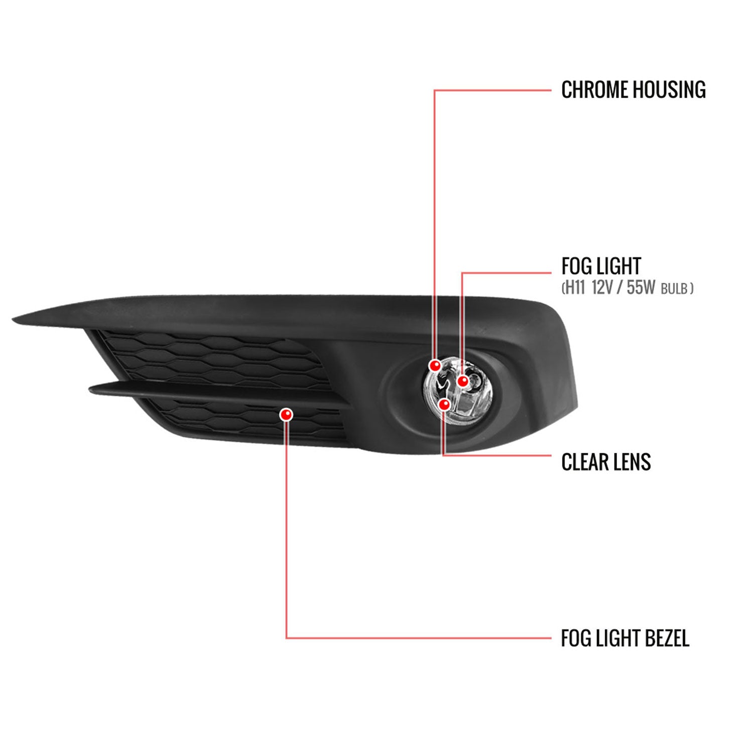 2016-2018 Honda Civic Coupe/Sedan H11 Fog Lights Kit Chrome/Clear Lens