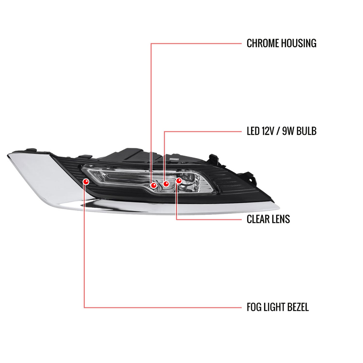 2017-2018 Ford Fusion LED Fog Lights Kit Chrome Housing/Clear Lens