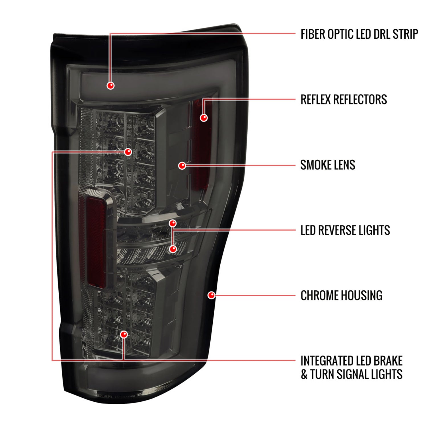 2017-2019 Ford F-250/350/450/550 Super Duty LED Bar Tail Lights Chrome/Smoke