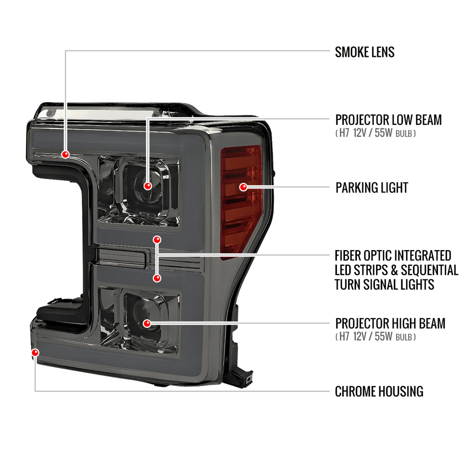 2017-2019 Ford F-250 F-350 F-450 F-550 LED C-Bar Headlights Signal Smoke