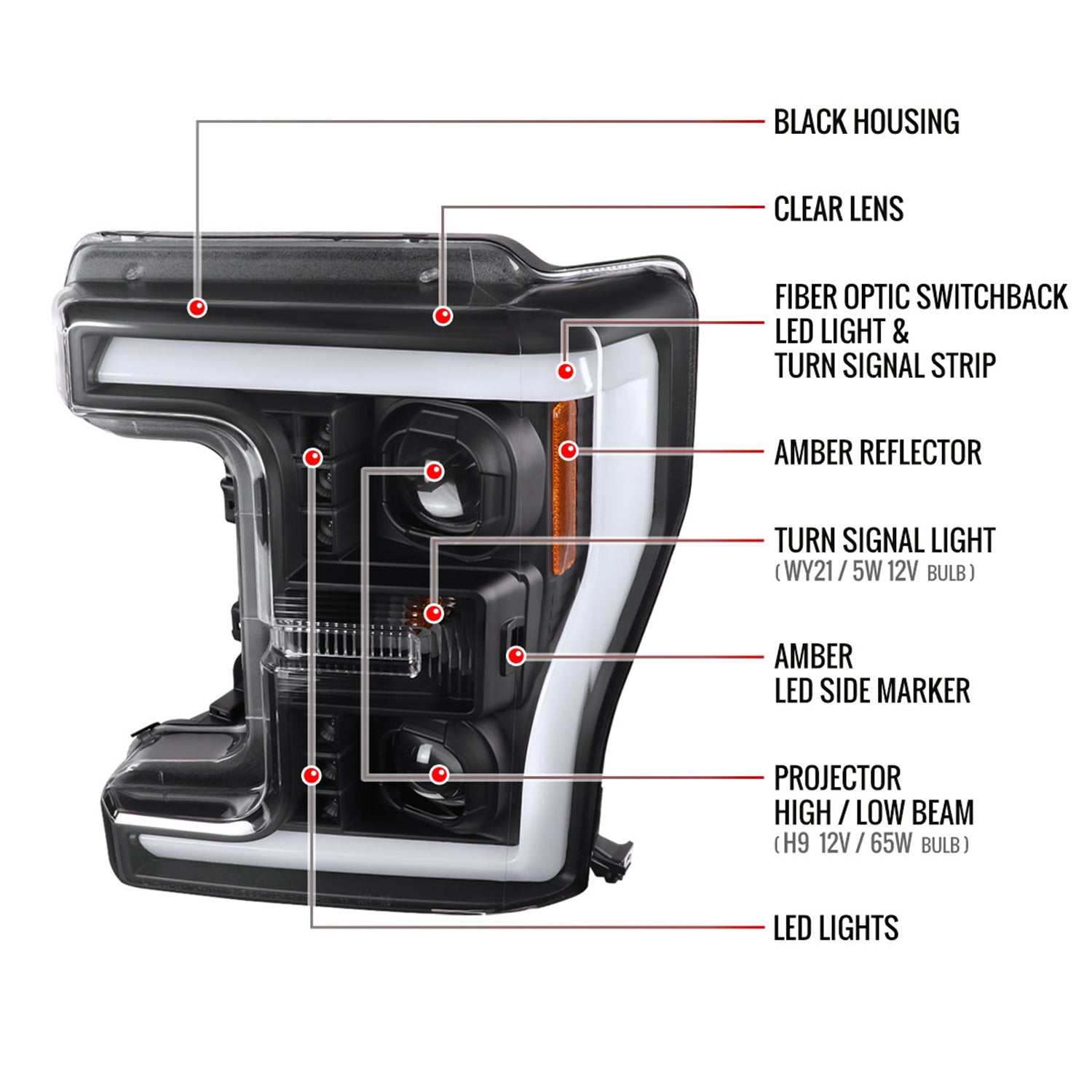 2017-2019 Ford F-250 F-350 F-450 F-550 LED CBar Projector Headlights Black