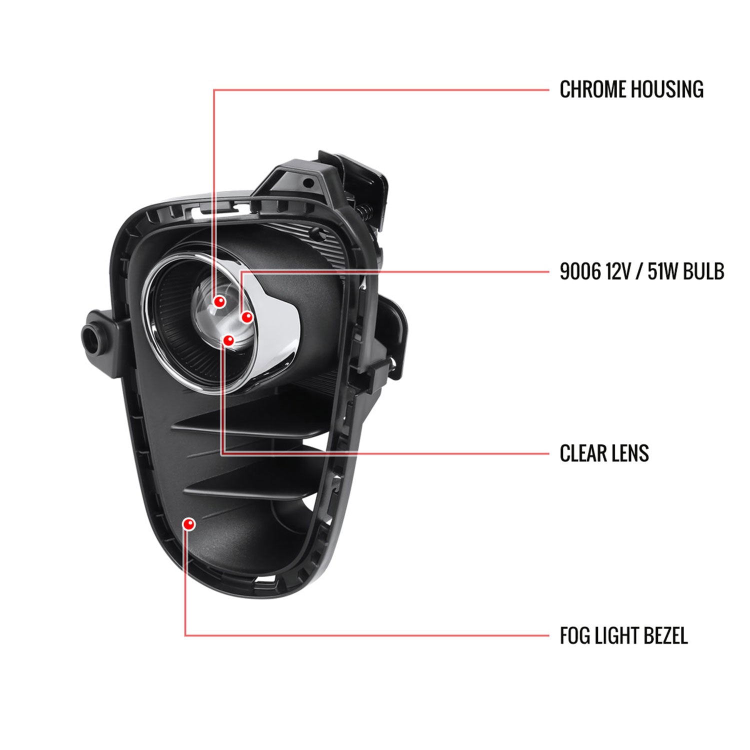 2018-2020 Kia Rio 9006 12v/51w Projector Fog Lights Kit Chrome/Clear Lens