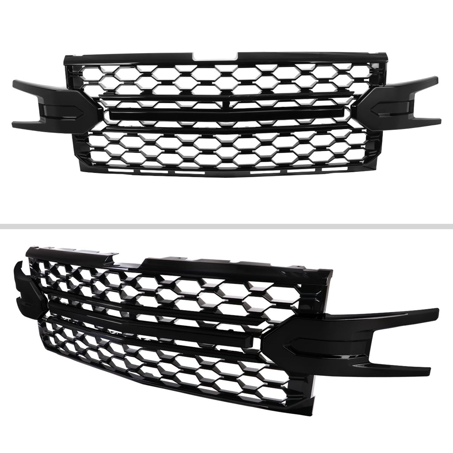Upgrade your Silverado’s front end with a bold, glossy black honeycomb grille that instantly refreshes your truck’s look and helps you stand out on the road—perfect for drivers who want their vehicle to make a statement every day.