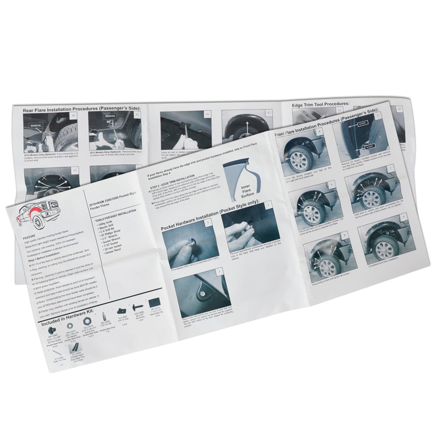 2019-2024 Dodge Ram 2500/3500 4PC Smooth Pocket Rivet Style Fender Flares