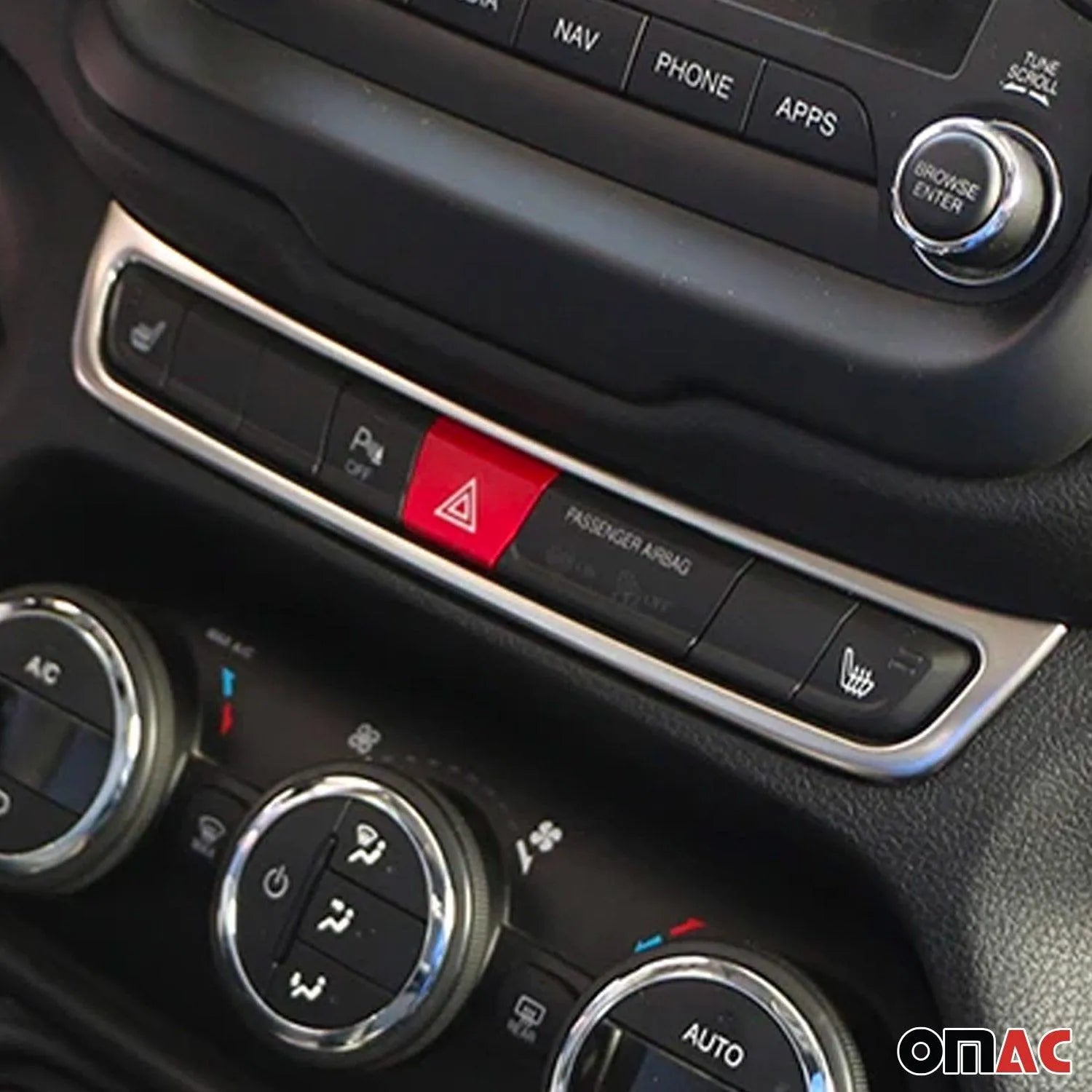 Upgrade your Jeep Renegade’s interior with a sleek silver chrome trim for the air condition switch, adding a touch of style and making everyday controls easier to spot and use—especially when you’re on the go or juggling errands.