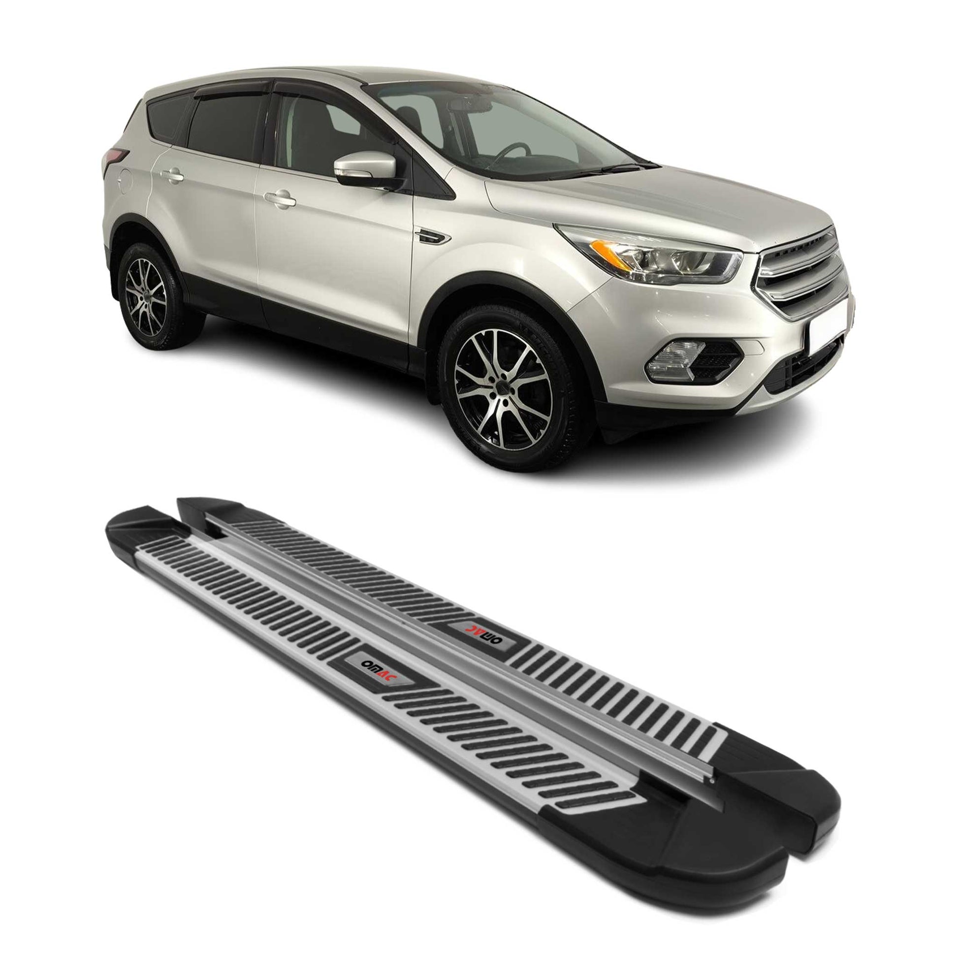 2013-2019 Ford Escape Running Boards Side Steps Silver & Black