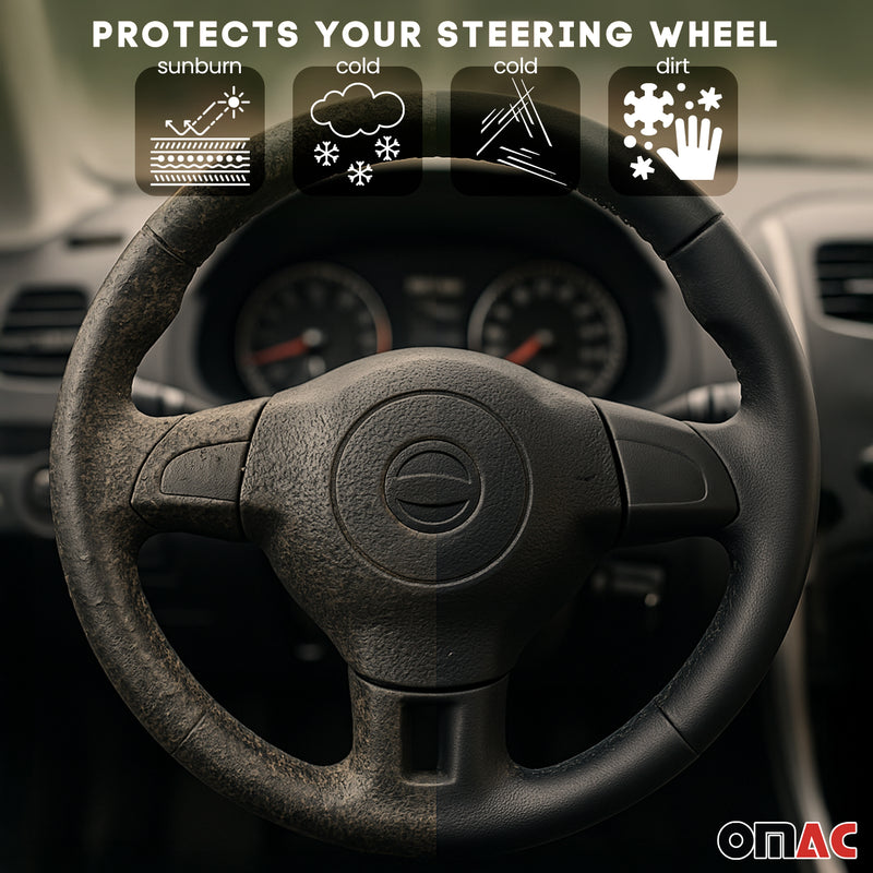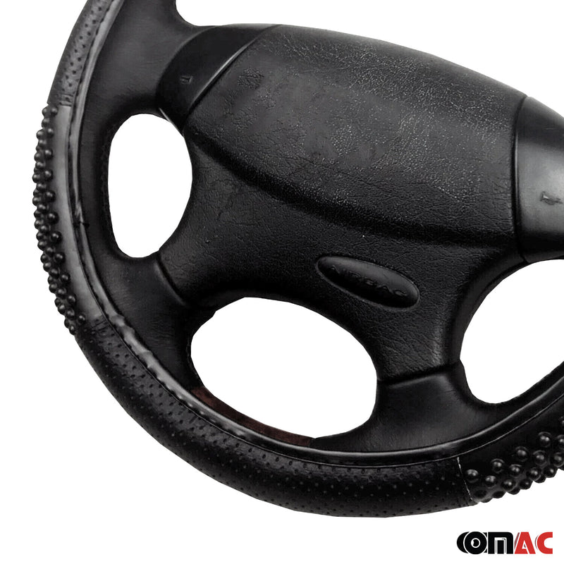 14.5-15.5’’ Steering Wheel Cover Black Leather Breathable Anti-slip