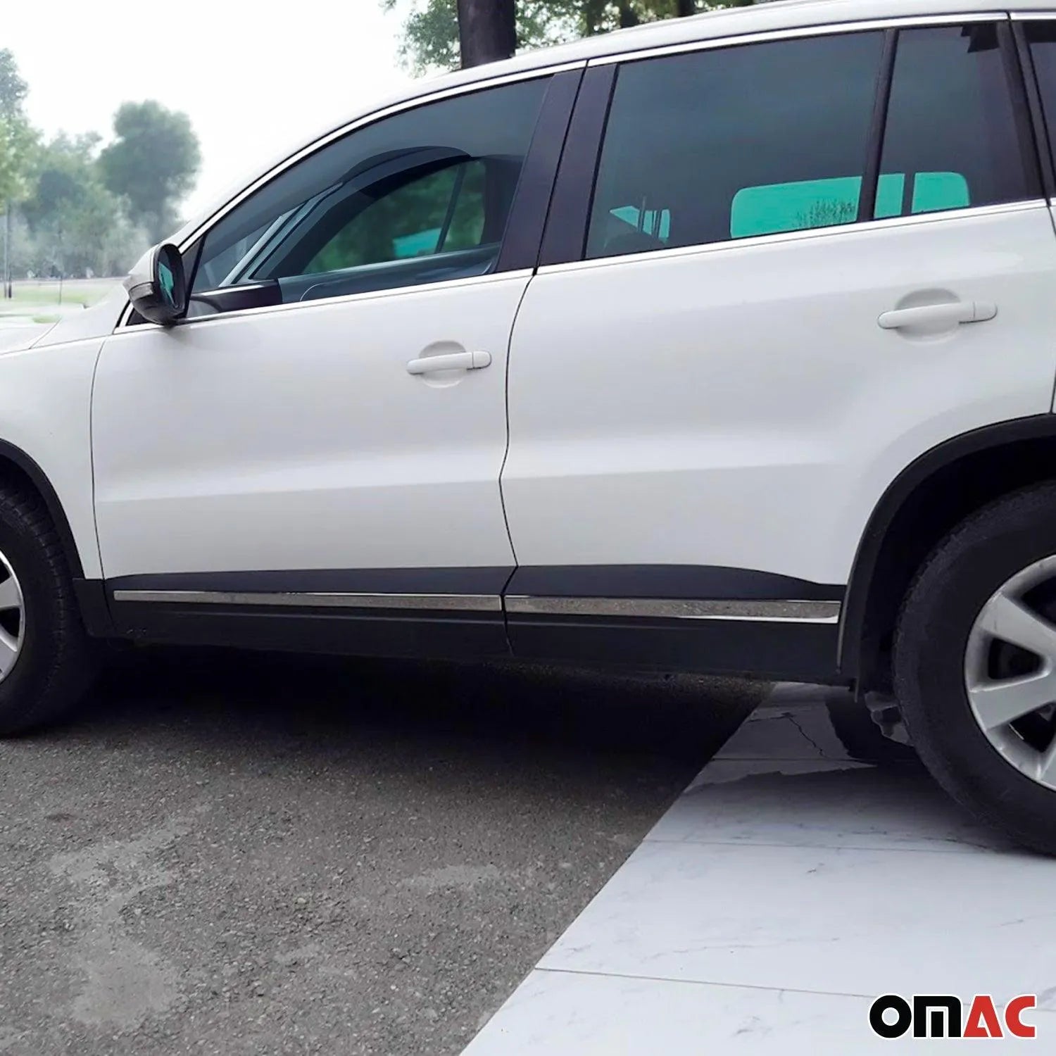 Give your VW Tiguan a sleek, finished look while protecting your doors from everyday dings and scratches. These stainless steel side door moldings add a touch of style and help keep your SUV looking sharp, even in crowded parking lots or tight garages.